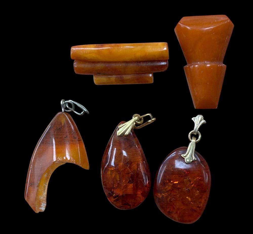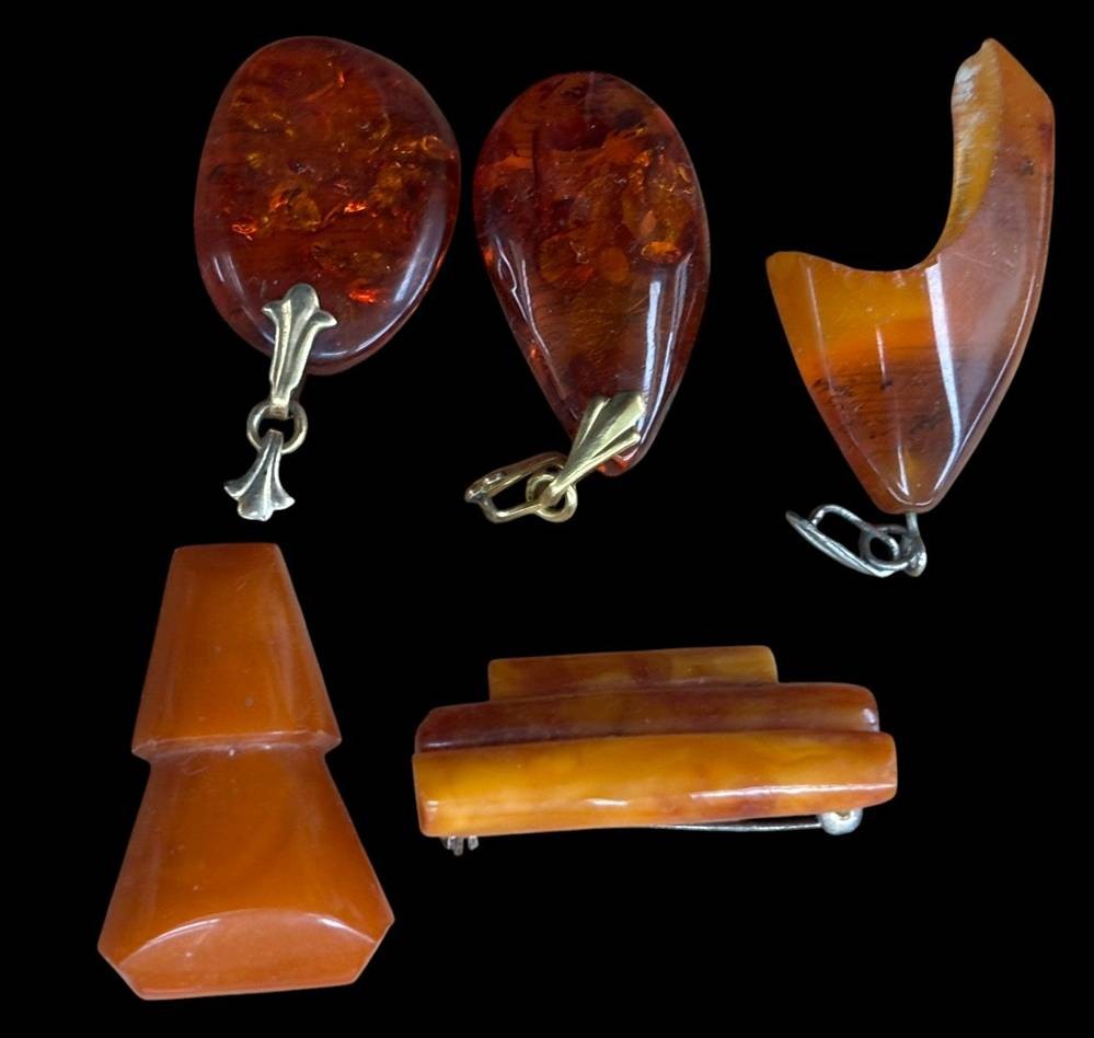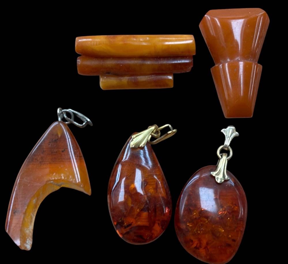 5x Bernstein-Anhänger und Nadeln