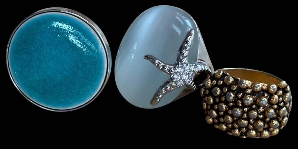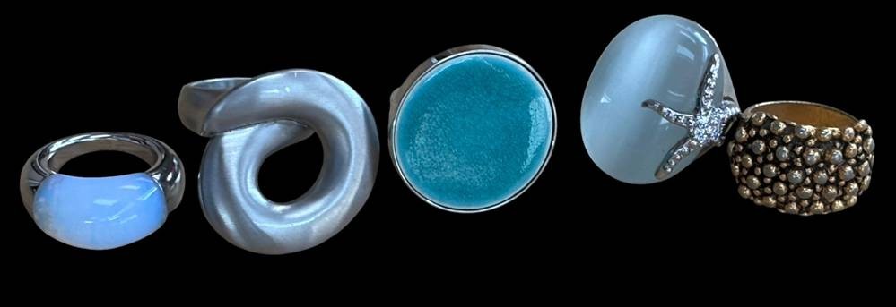 5x div. grosse Modeschmuck-Ringe, 3x mit Steinen [1]