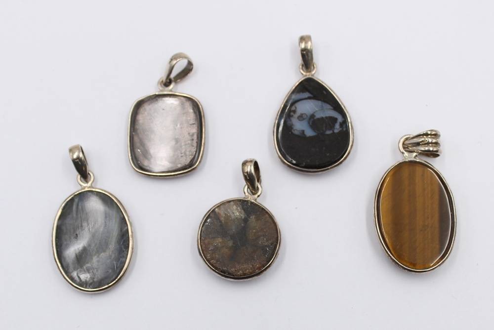 5x div. Ketten-Anhänger, Steinbesatz, Silbermonturen, ca. L-4cm [1]