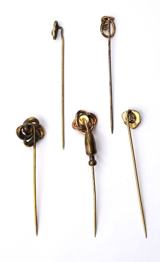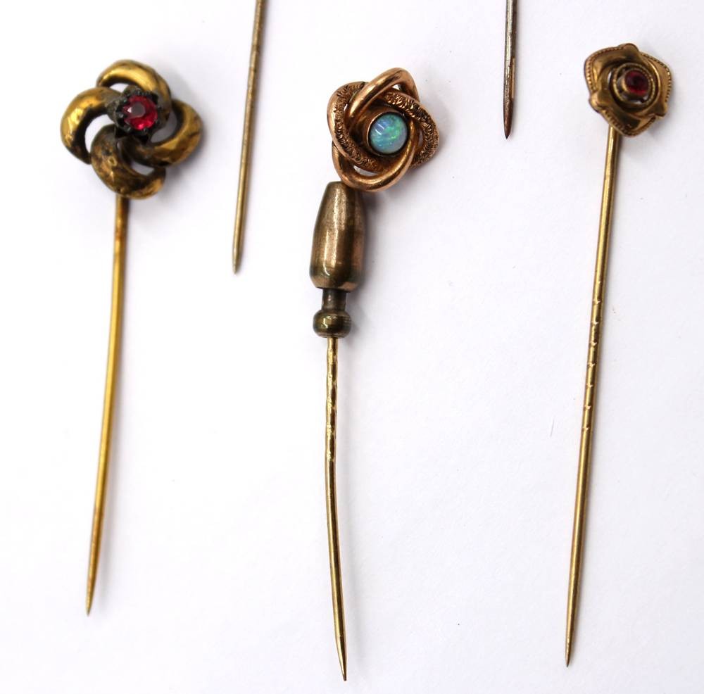5x div. Nadeln um 1900, untersch. Steinbesatz, wohl Doublé, ca. L-6cm [1]