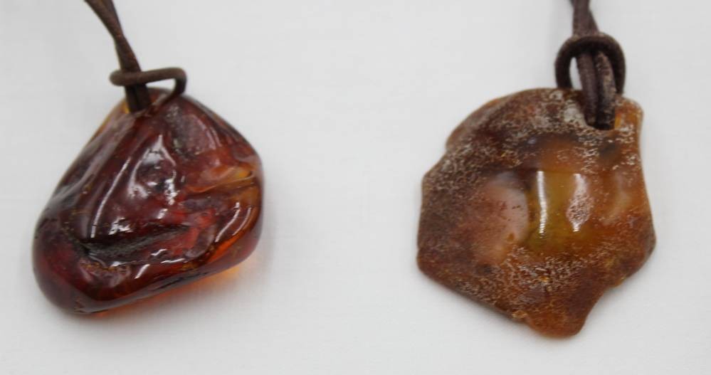 5x Halsketten mit Bernsteinanhängern, Lederbänder [1]