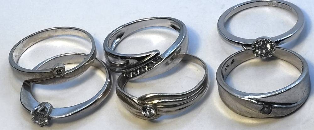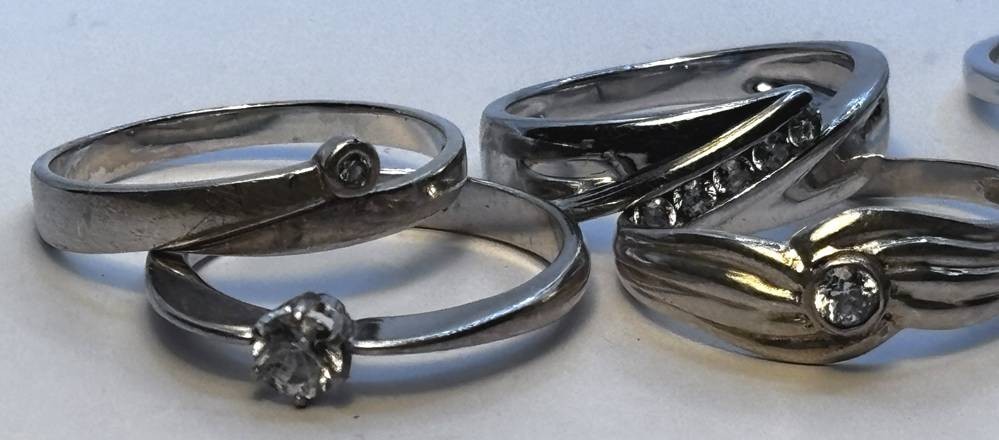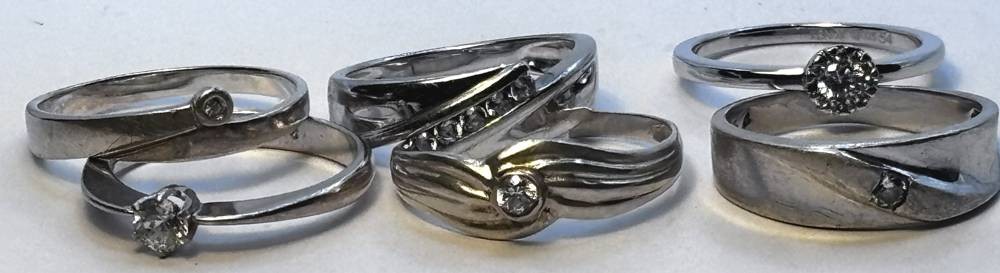 6 Silberringe-925- mit klaren Steinen, zus. 13 gr. [1]