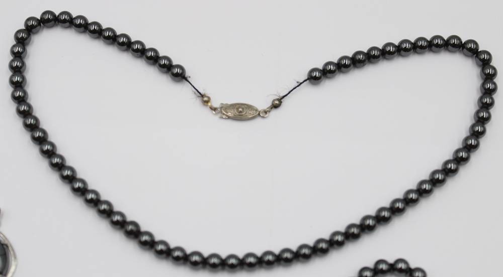 6 Teile div. Hämatit-Schmuck, Anhänger, Armband und 4 Ketten, ca. L-45cm [1]