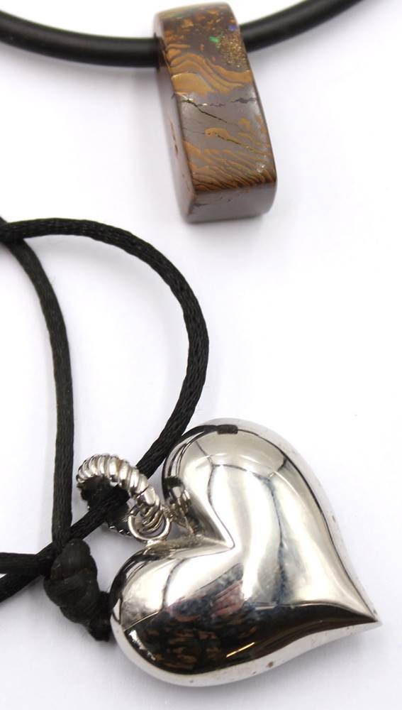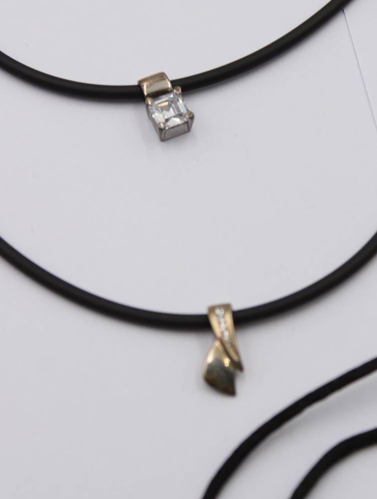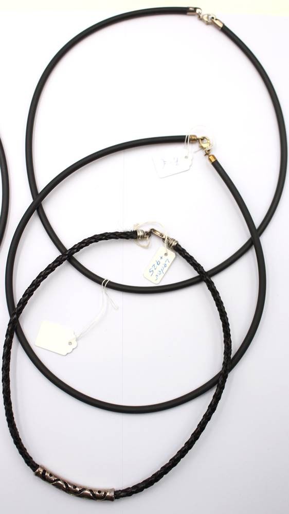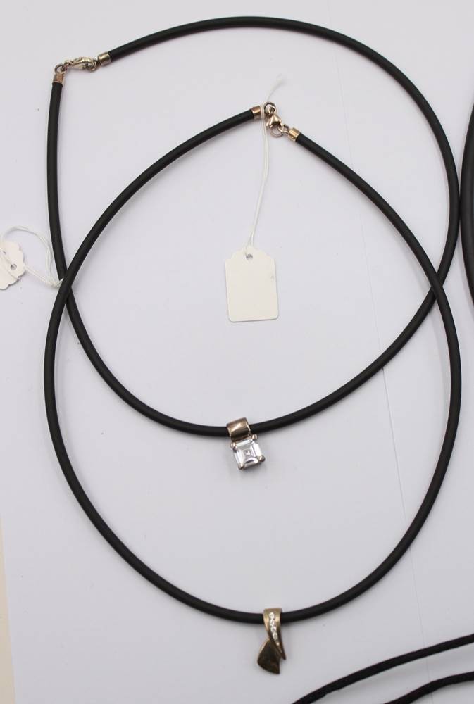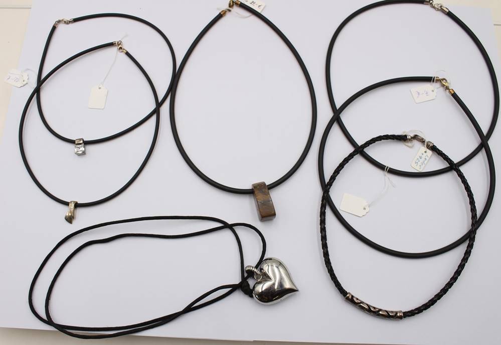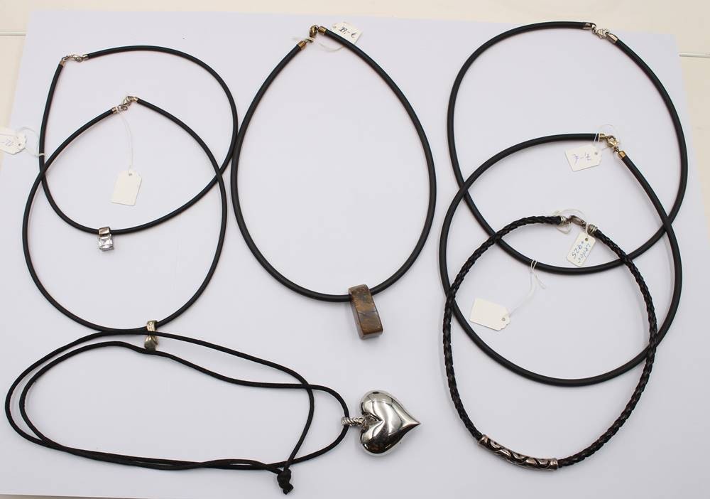 6x div. Kautschuk/Stoffketten mit Anhängern, einige Silber [1]