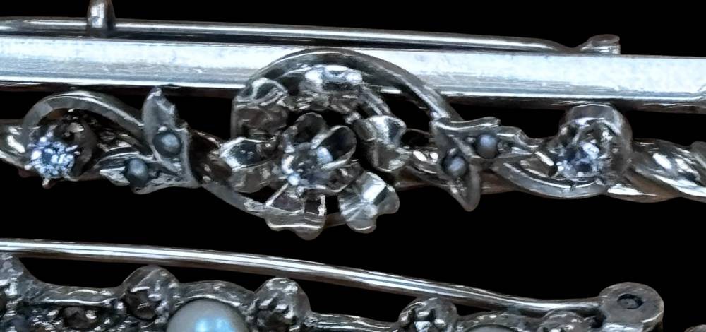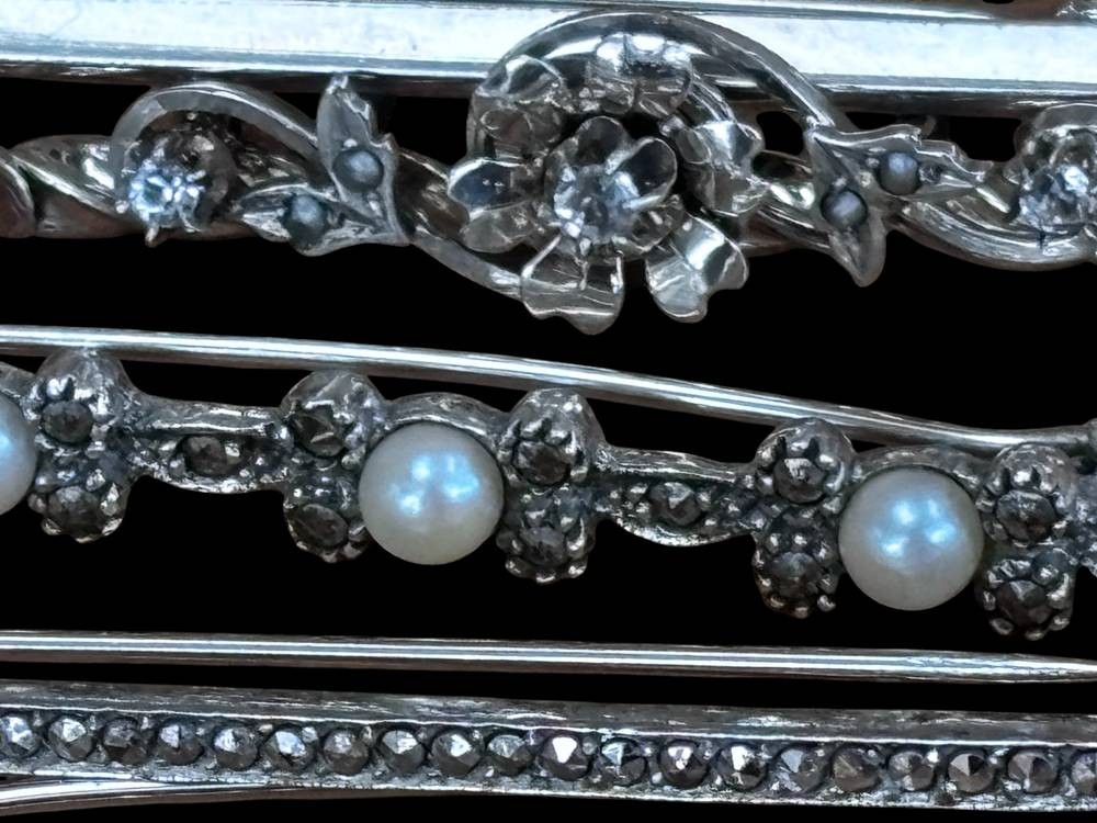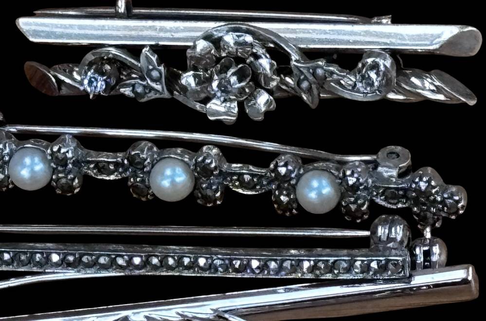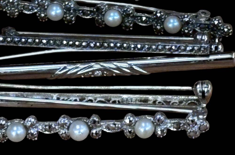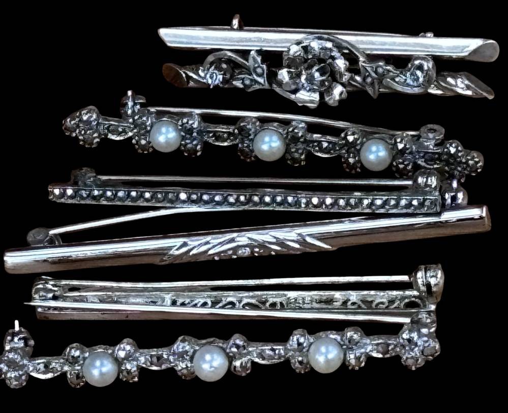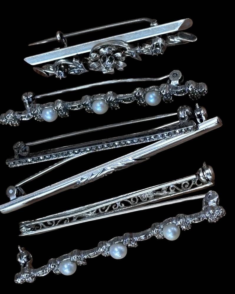 6x div. Silbernadeln, hpts. -925-, zus. ca. 20 gr., B-max. 5 cm [1]