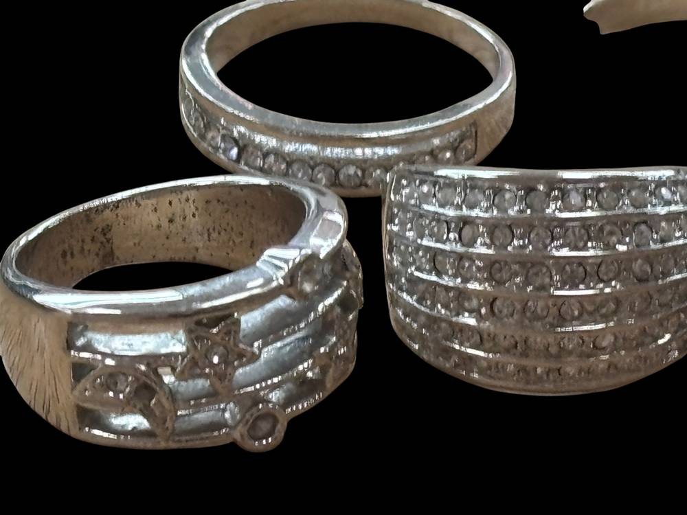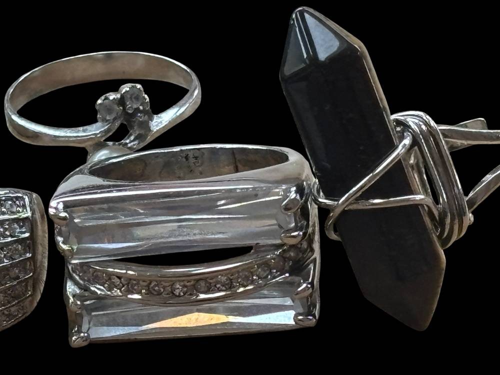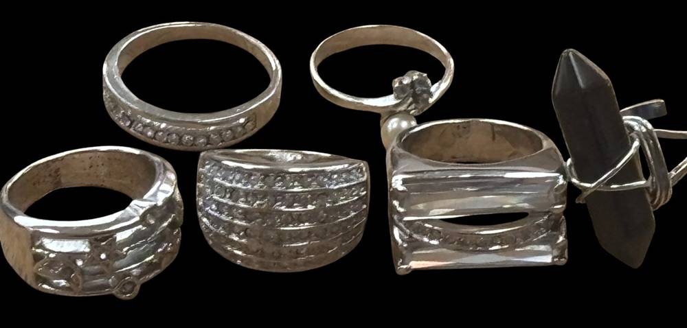 6x versilberte Ringe mit Steinen, 48,4 gr. [1]