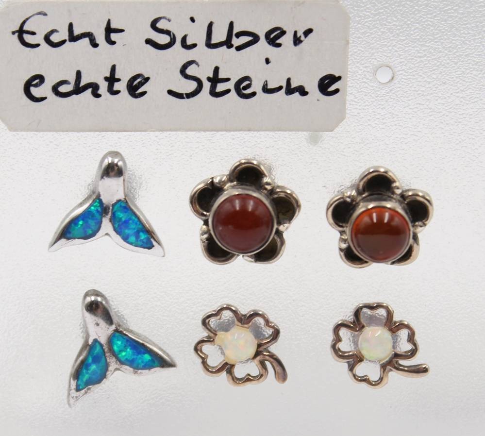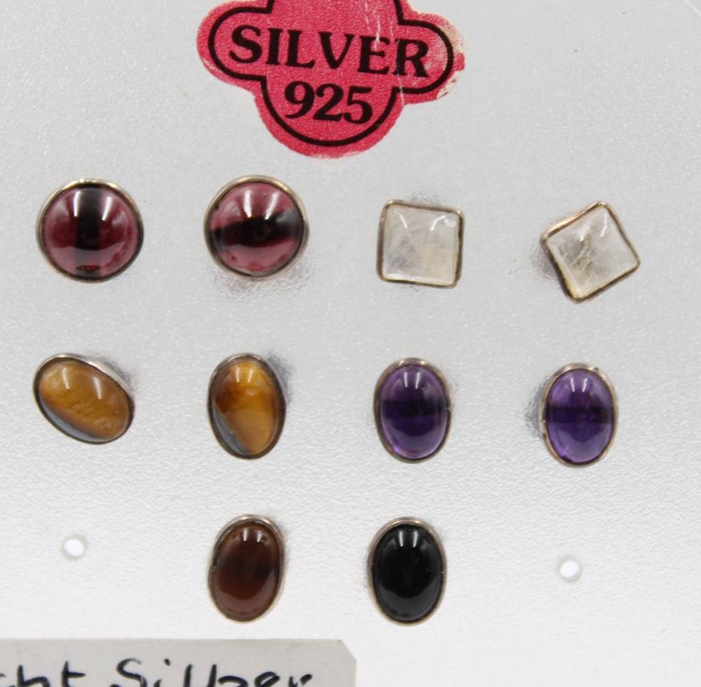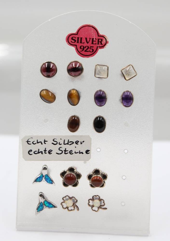8 Paare div. Ohrstecker, Silber, je mit Steinbesatz, ca. D-0,8cm [1]