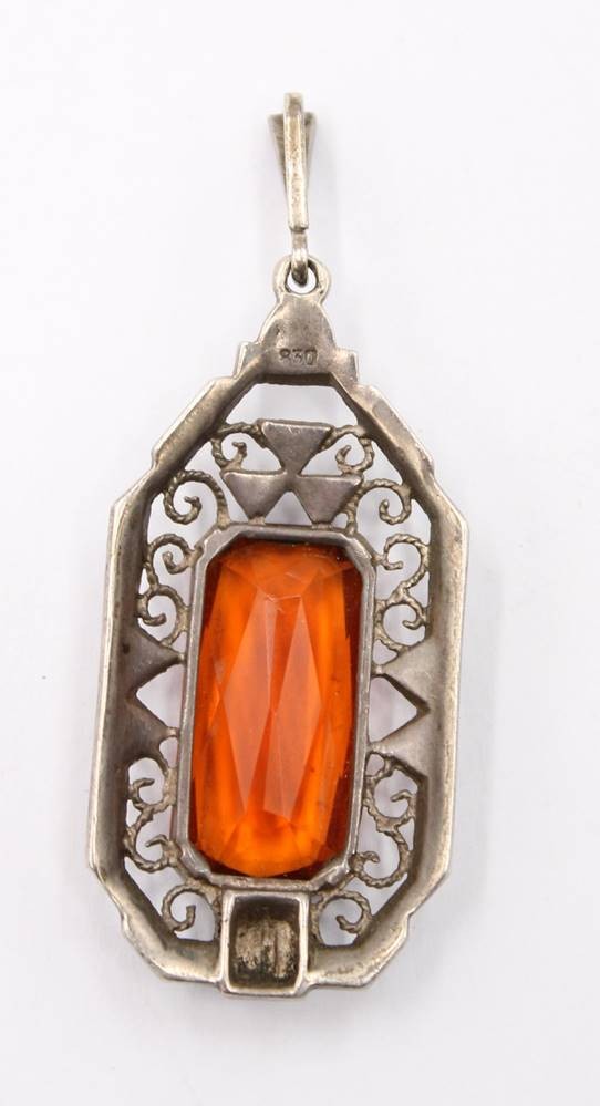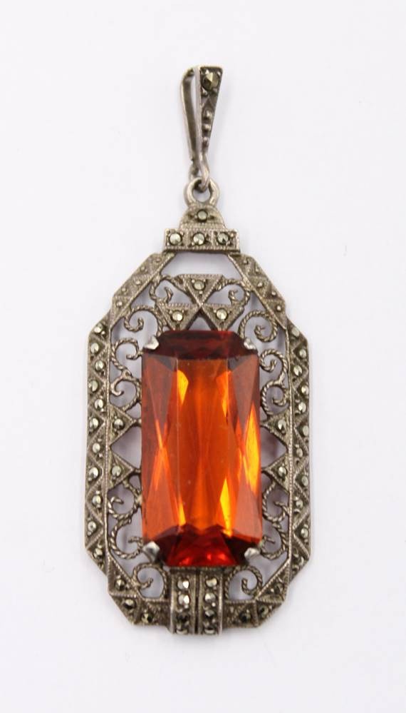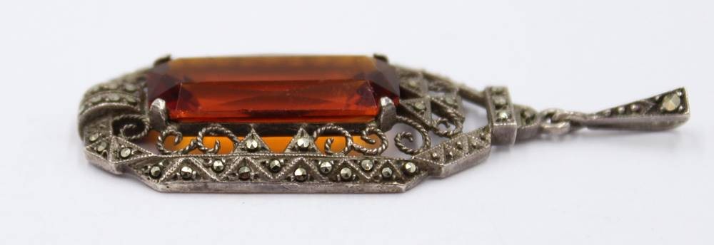 830er Silber-Anhänger, bernsteinfarbener Stein u. Markasiten, älter, ca. 6,5gr., L-5cm [1]