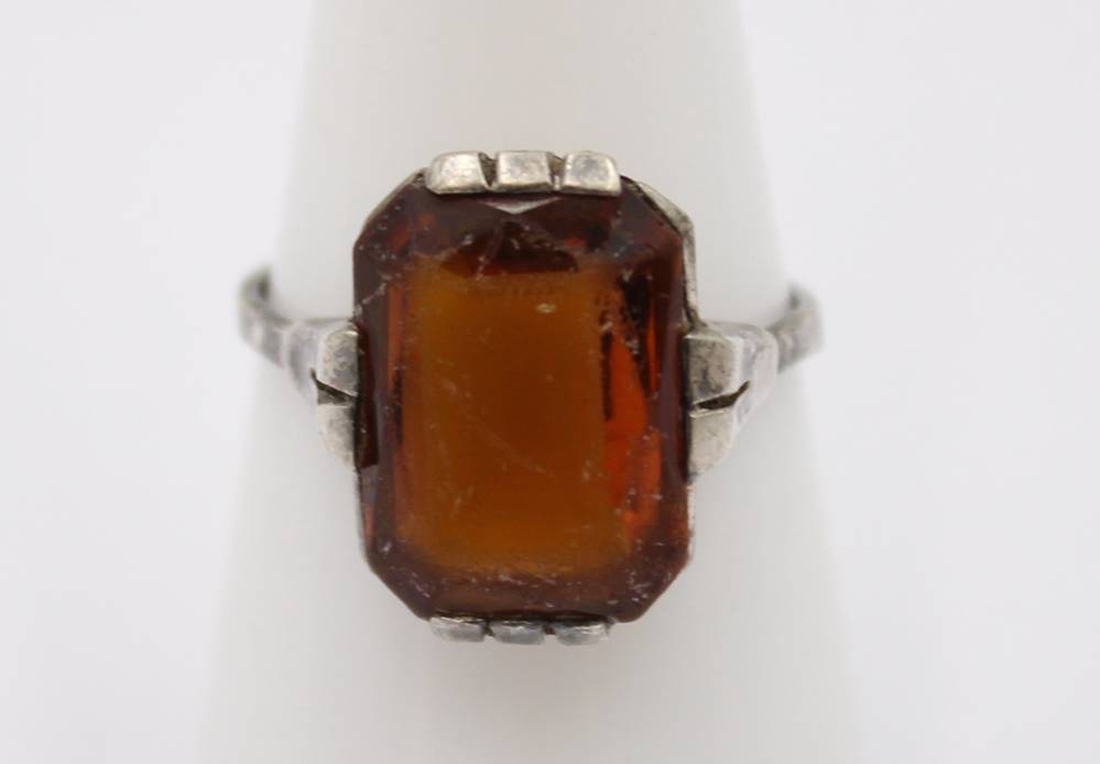 830er Silber-Ring mit Bernstein, älter, getragene Erhaltung, ca. 4,2gr. RG 56 [1]