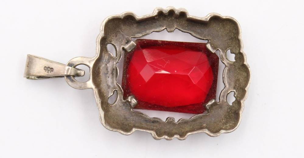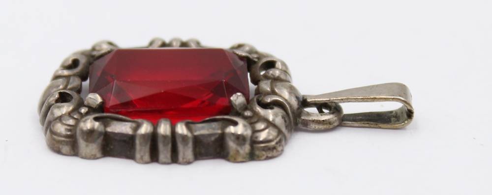 835er Art-Déco Anhänger, roter Stein, ca. 4,5gr., L-3cm [1]
