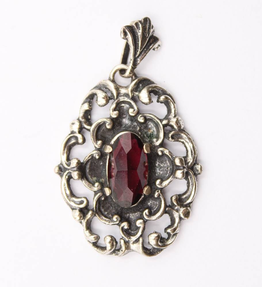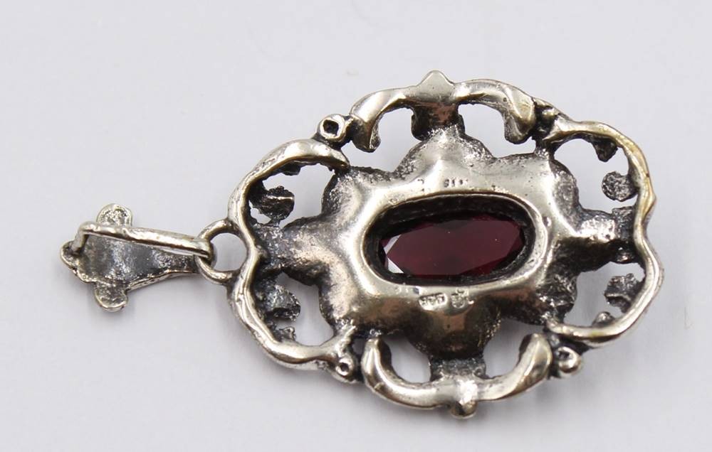 835er Silber-Anhänger, roter Stein, 6,4gr., L-4cm [1]