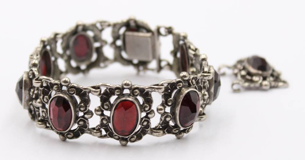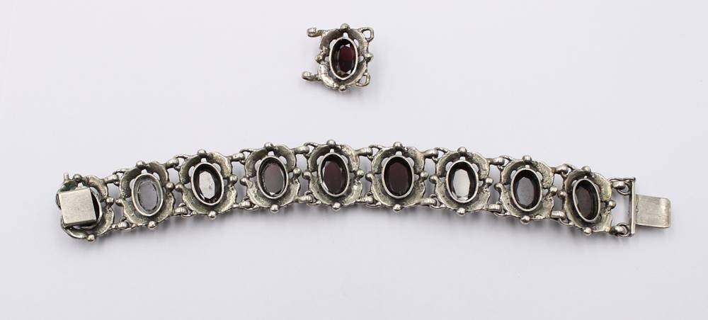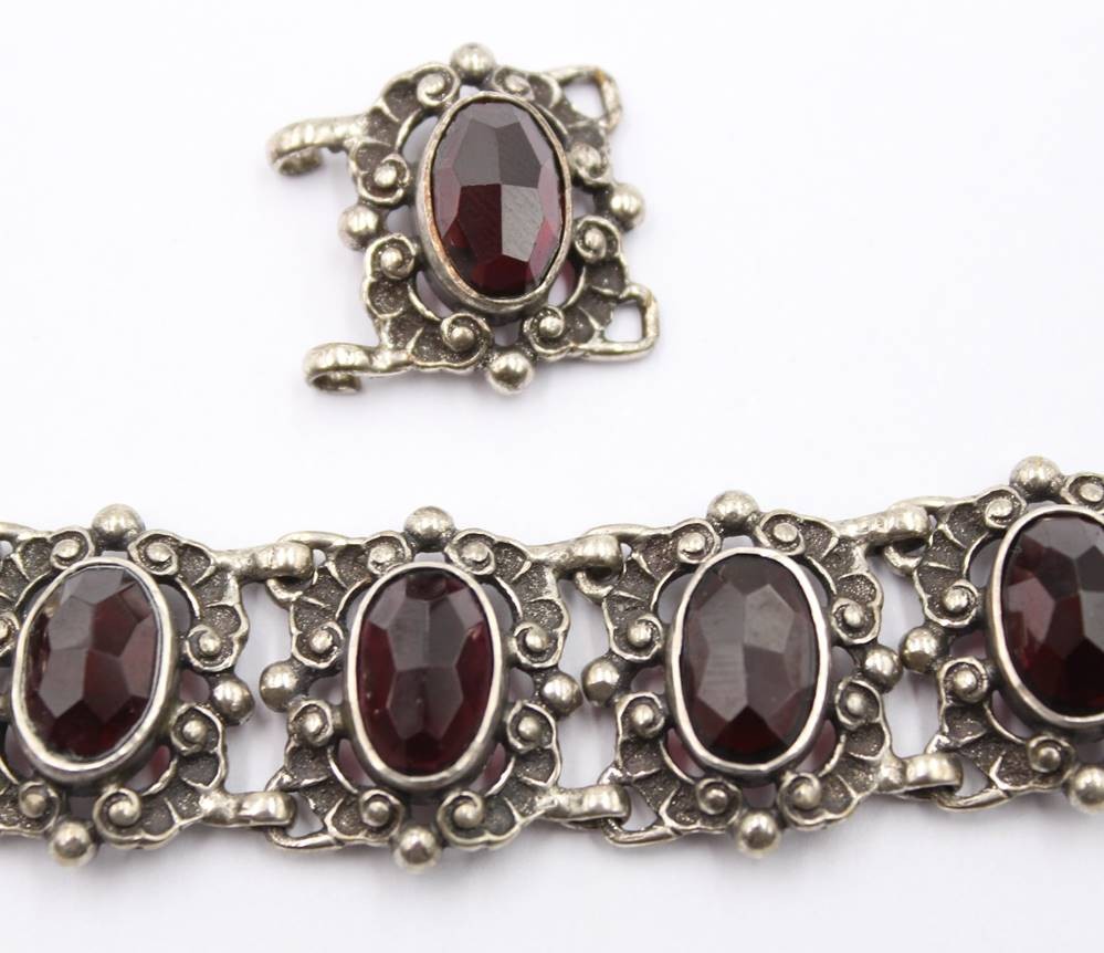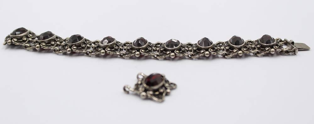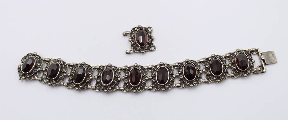 835er Silber-Armband, rote facett. Steine, anbei Ersatzglied, zus. ca. 38,2gr., ca. L-16,5cm [1]