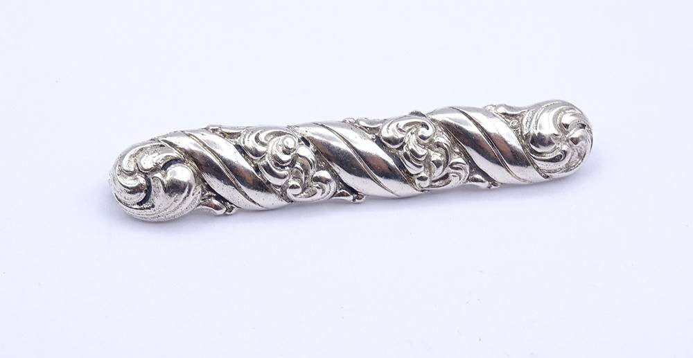 835er Silber Brosche mit Rosenmuster, L. 5,8cm, 5,7g.