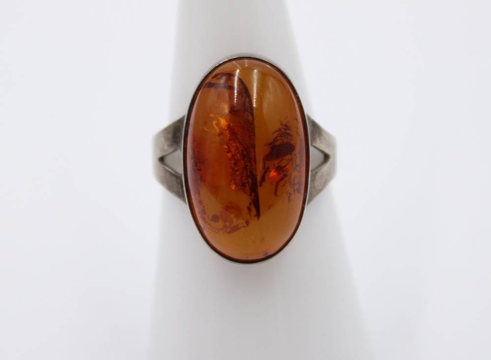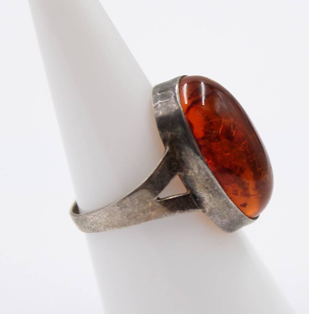 835er Silber-Ring, mit Bernstein-Cabuchon, 2,8gr., RG 55 [1]