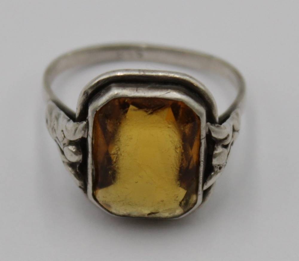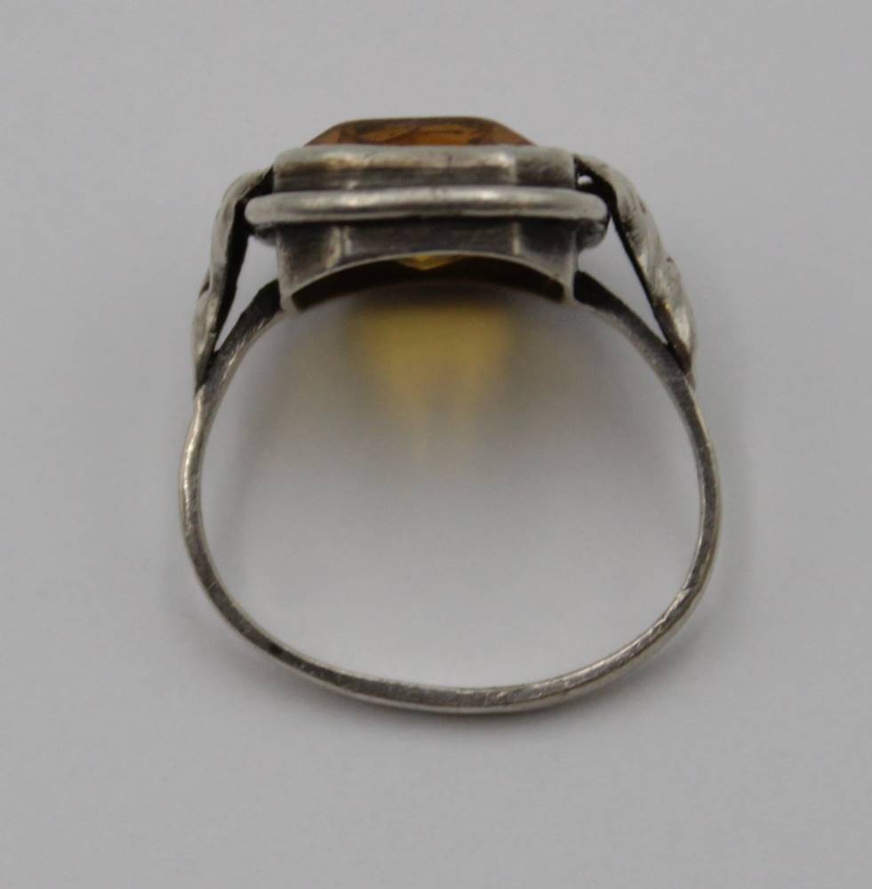835er Silber-Ring mit gelben Stein, um 1930, 3,8gr., RG 55, Schiene verbogen [1]
