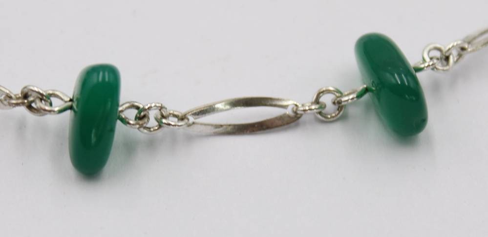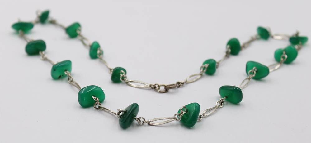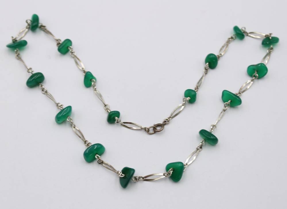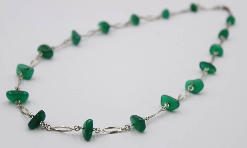835er Silberkette mit grünen Steinen, zus. ca. 22,9gr., L-59cm [1]