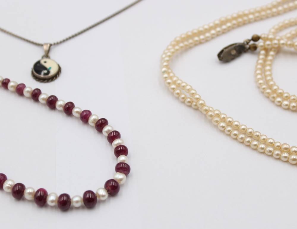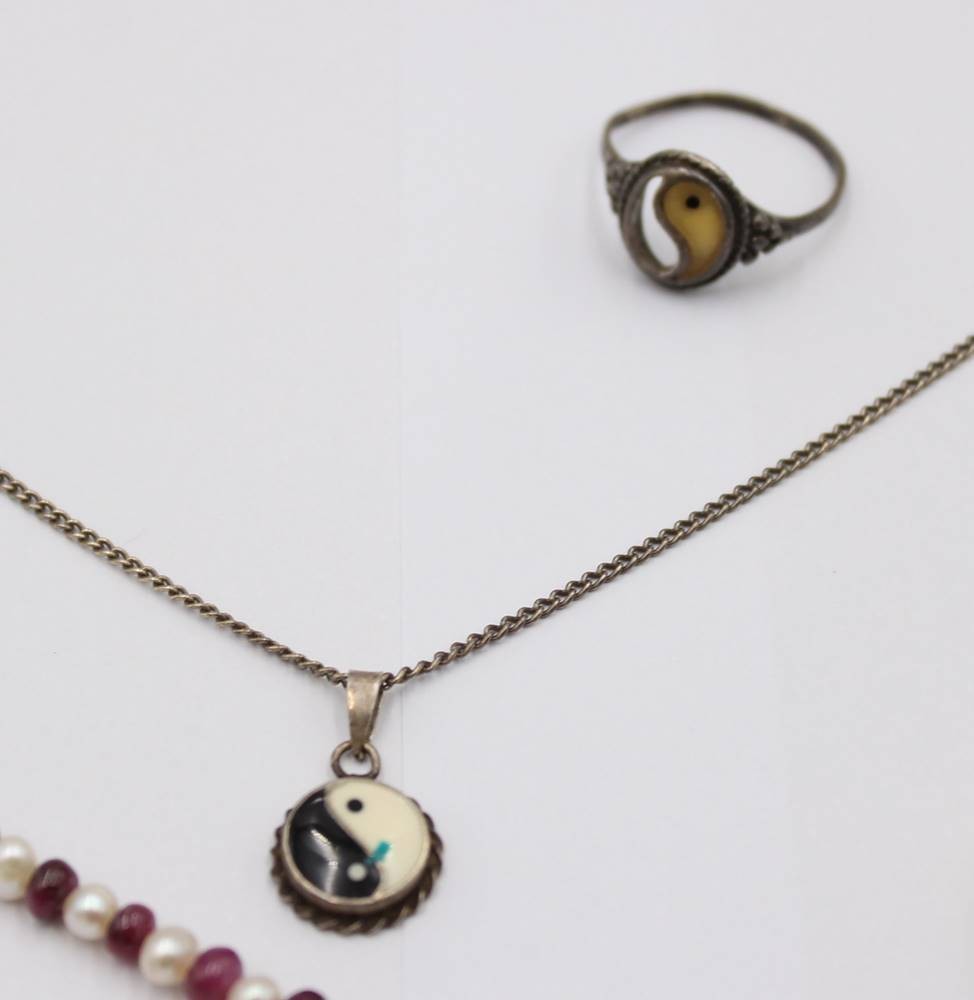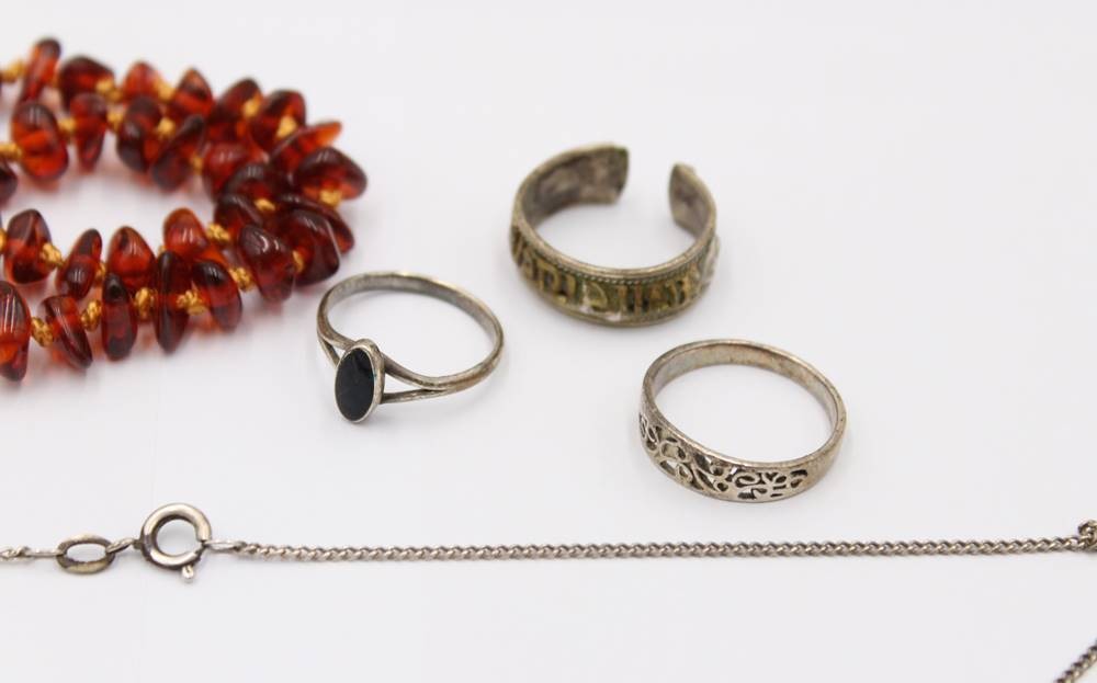 8x div. Schmuck, Ketten, Ringe, teilw. Silber, Ketten ca. L-60cm [1]