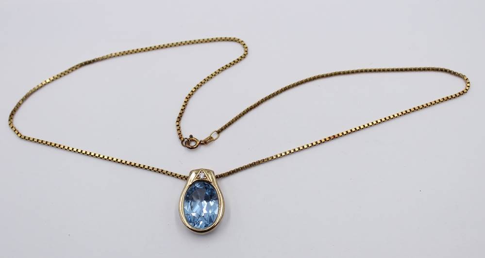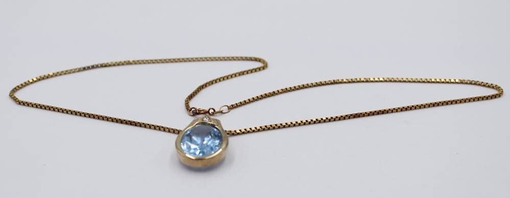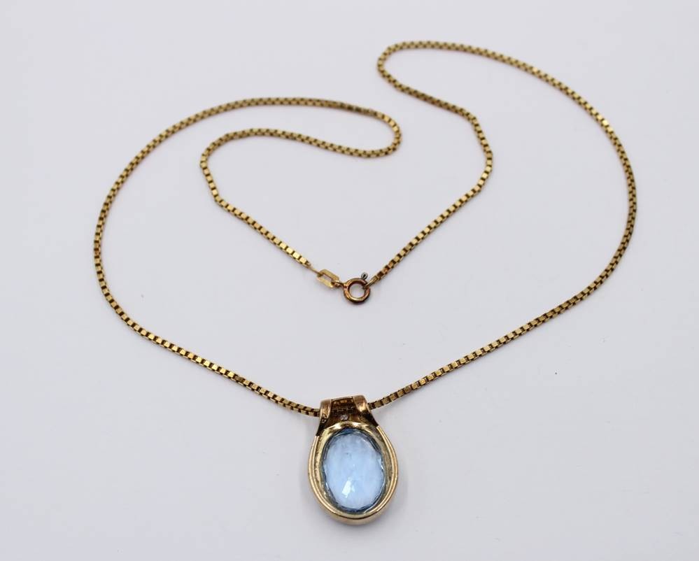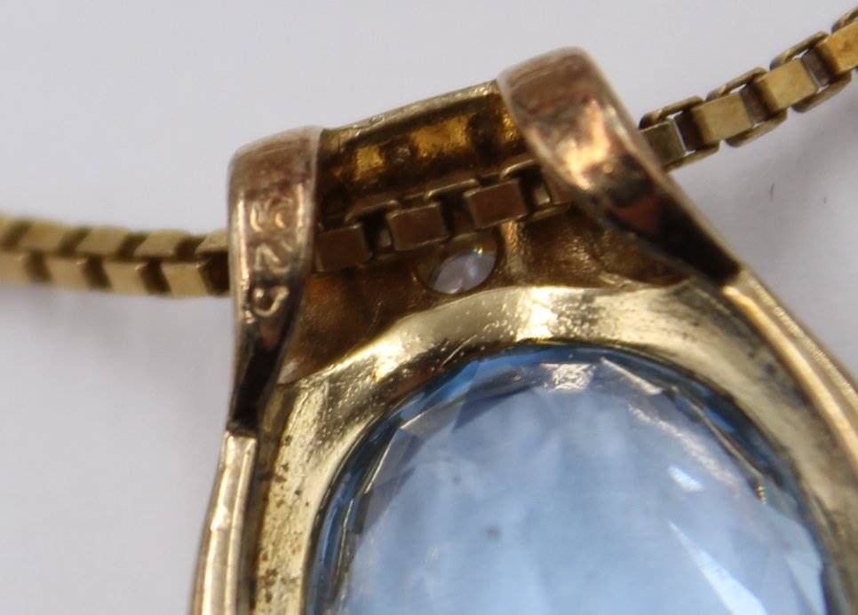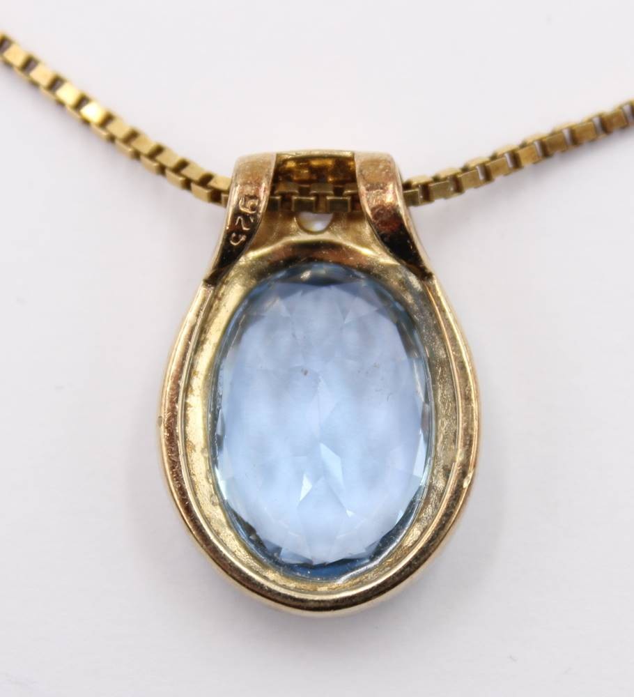 925er Anhänger an Kette, vergoldet, hellblauer Stein, ca. L-48cm, Anh. ca. L-2,3cm, 12,3gr. [1]