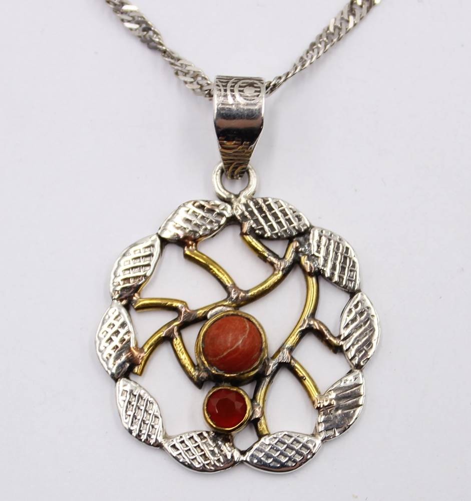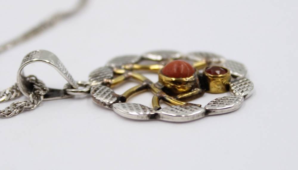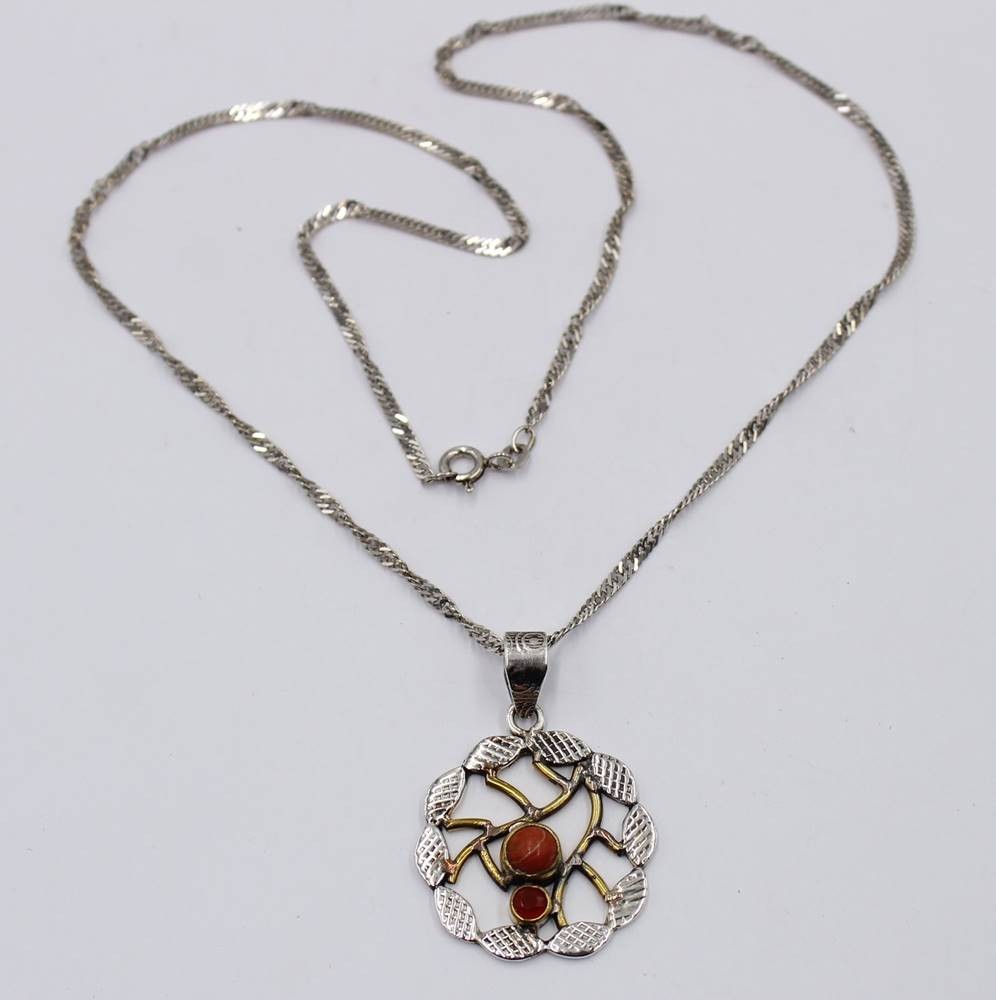 925er Anhänger mit Koralle an 925er Kette, zus. ca. 9,4gr., L-50cm Anh. L-4cm [1]