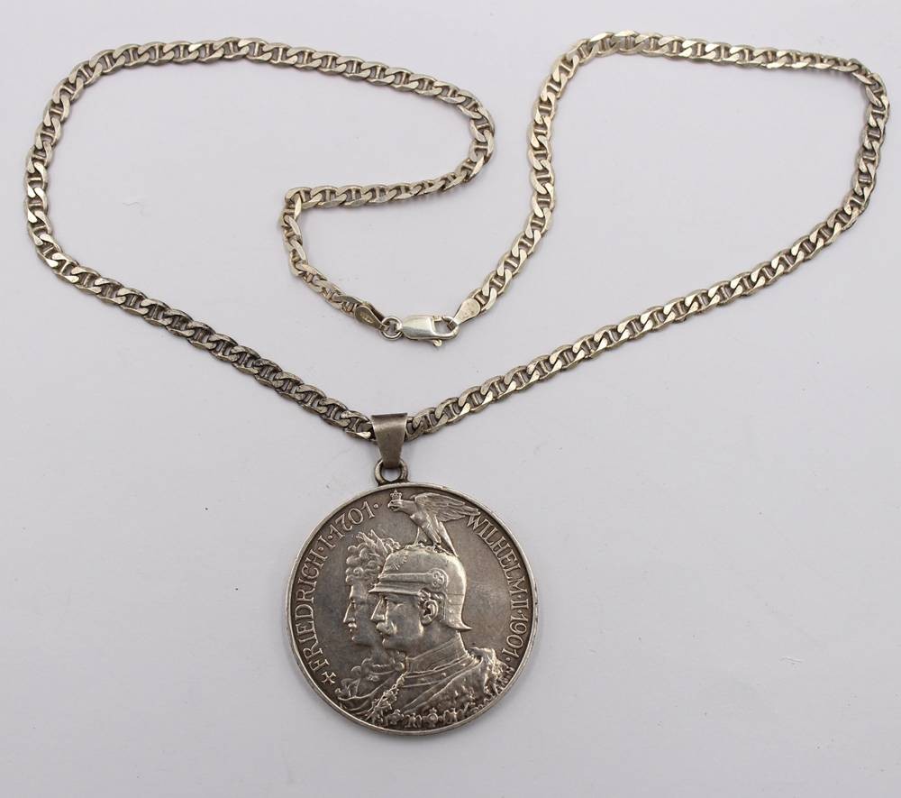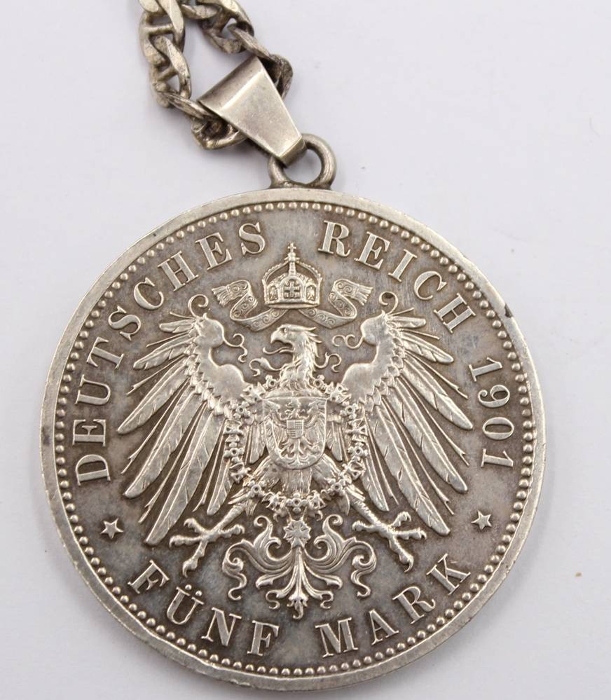 925er Halskette mit Münzanhänger, 5-Reichsmark 1901, zus. ca. 39,4gr., Kette L-45cm Anhänger D-3,8cm [1]