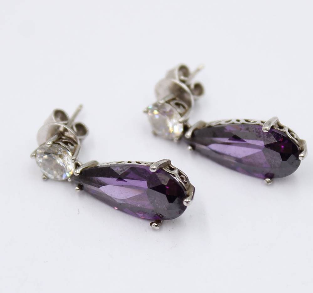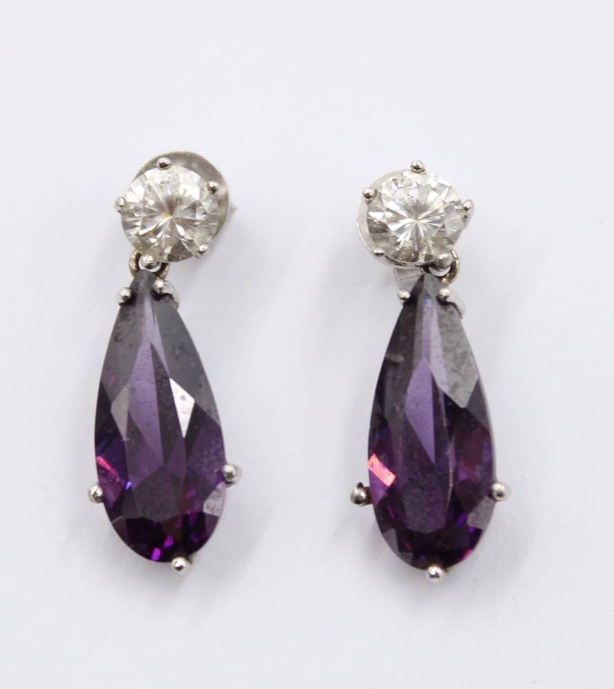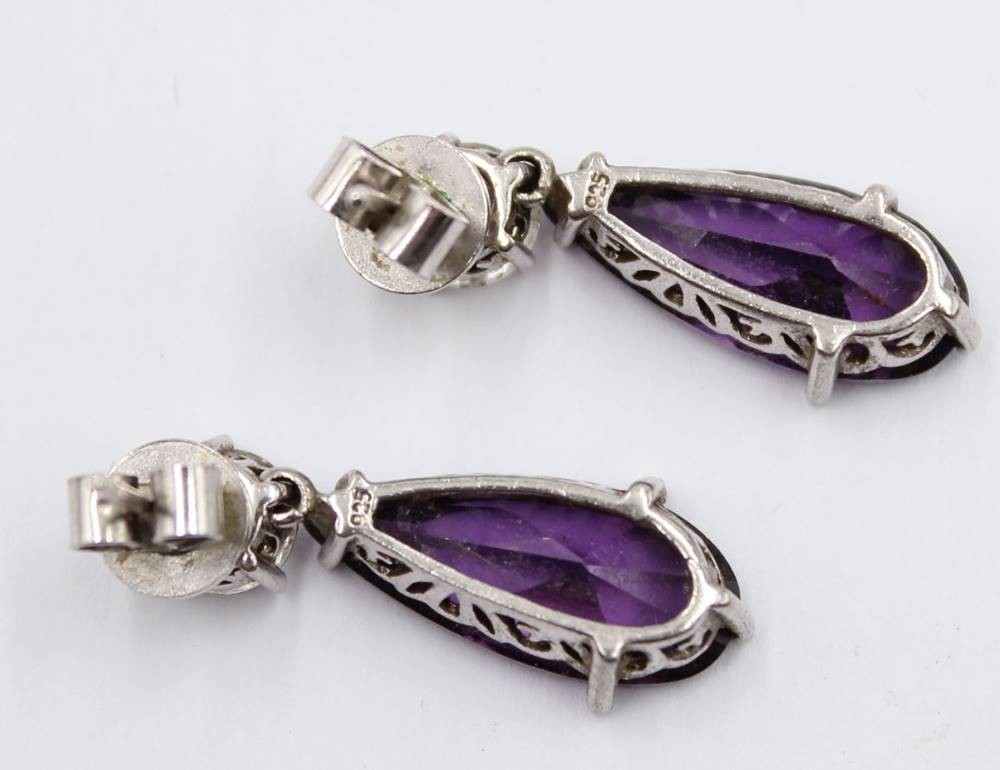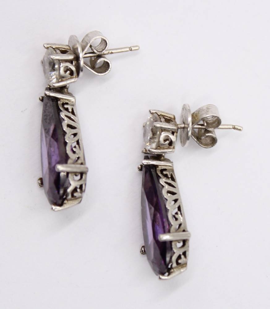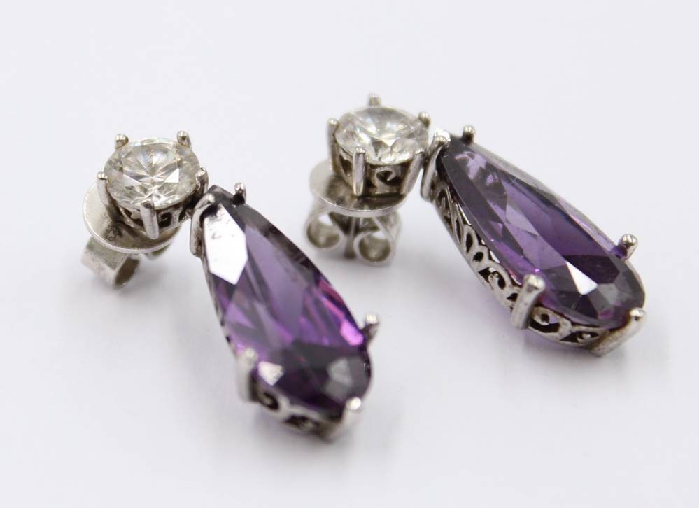 925er Ohrstecker, klarer u. lila Stein, zus. 6,9gr., ca. L-2,5cm [1]
