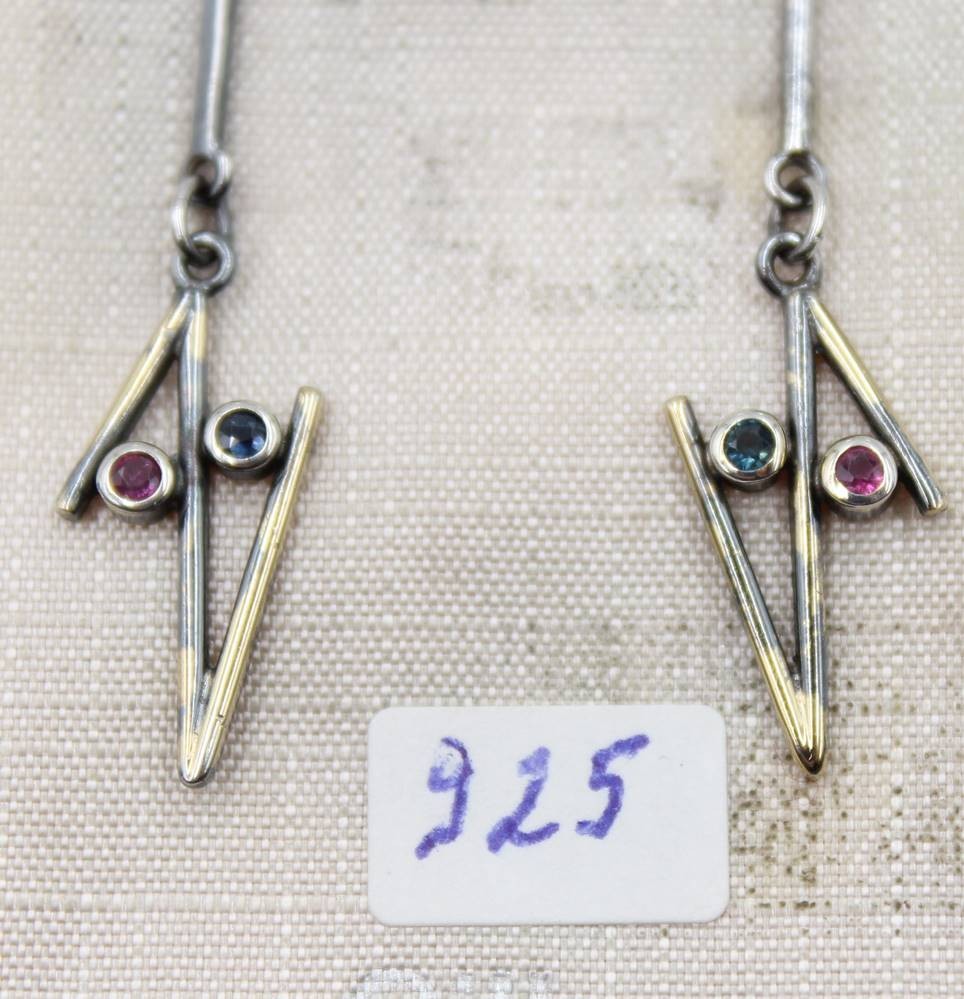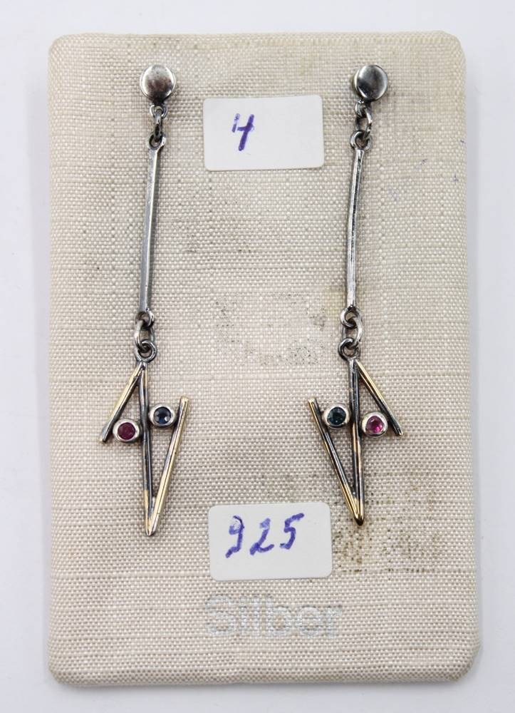925er Ohrstecker, modernes Design, Rubin- und Saphirbesatz, ca. 2,5gr., L-5cm [1]
