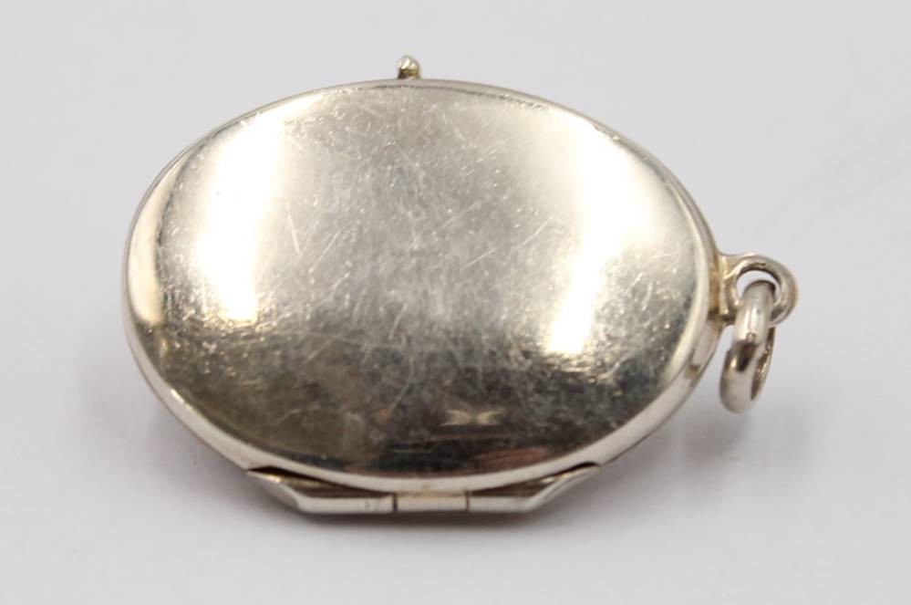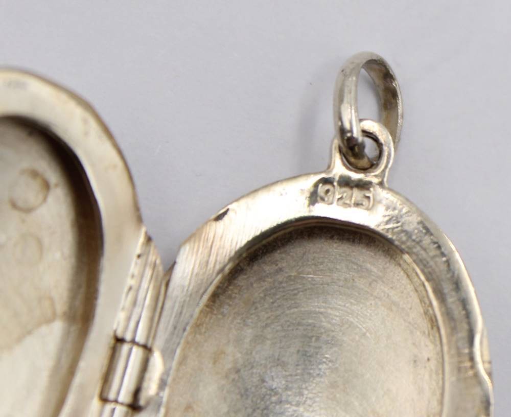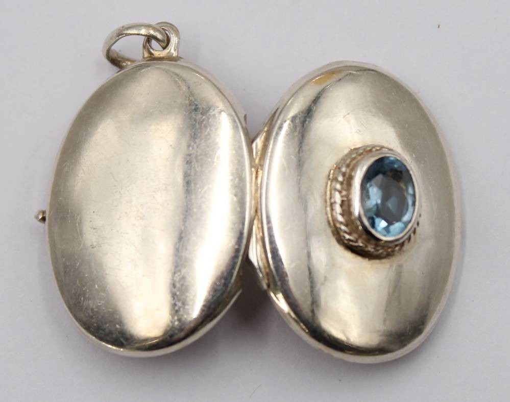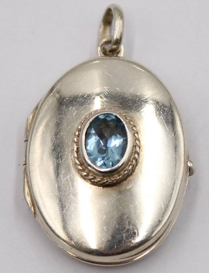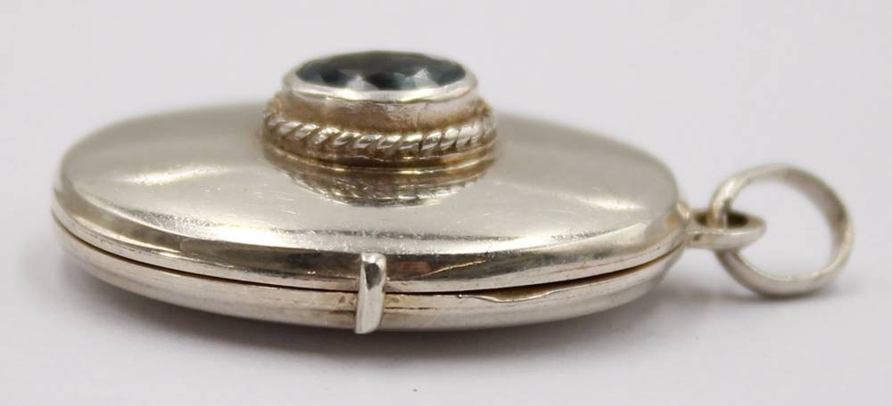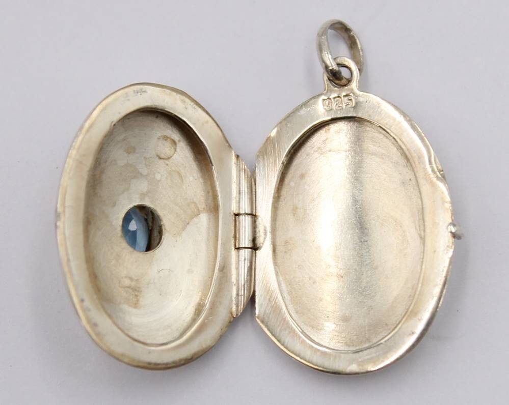 925er Silber Anhänger ( Foto Medaillon ) , mittig blauer Stein, L. 3,5 cm, 7 Gramm, guter Zustand [1]