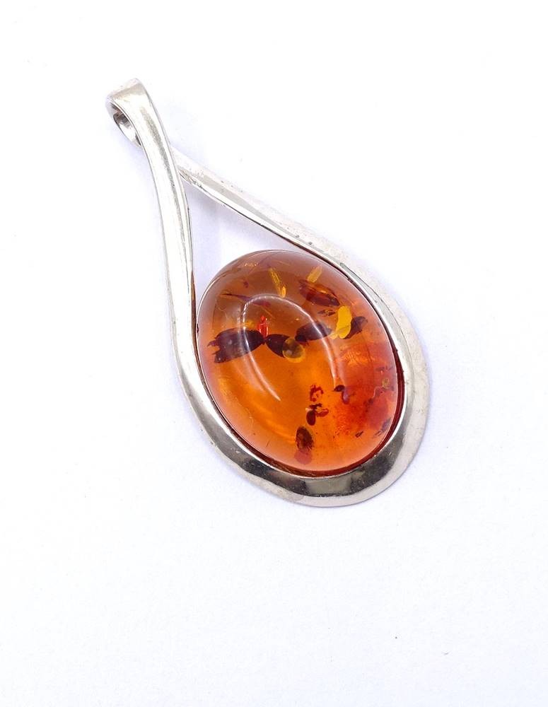 925er Silber Anhänger mit Bernstein Cabochon, L. 4,3cm, 5,1g. [1]