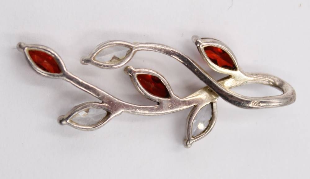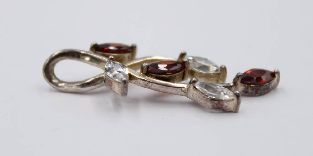 925er Silber-Anhänger, mit Granat und klare Steine, florale Form, 2,2gr., L-3,2cm [1]