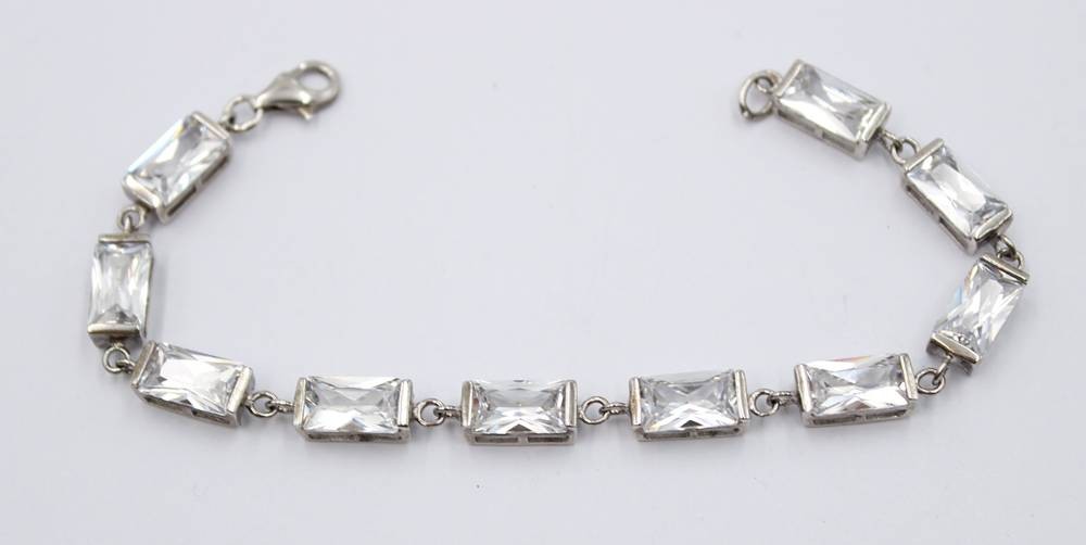 925er Silber-Armband, klare Steine, zus. 14,5gr., L-19cm [1]