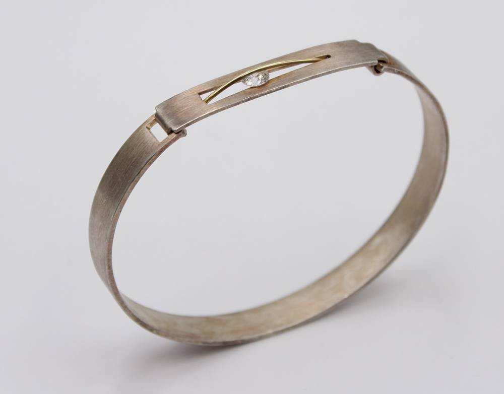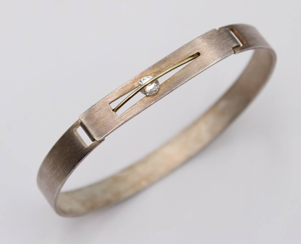 925er Silber-Armreif, klarer Stein, 20,6gr., ca. D-6,8cm [1]