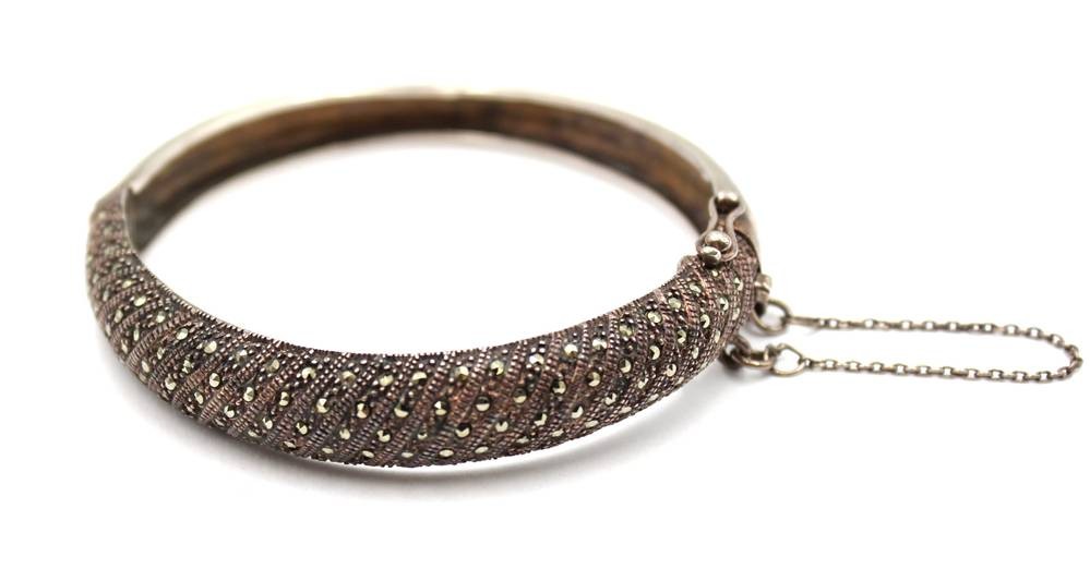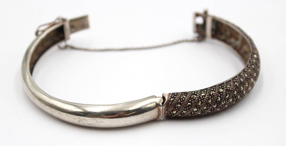 925er Silber-Armreif, Markasitenbesatz, 26,3gr., ca. D-6cm [1]