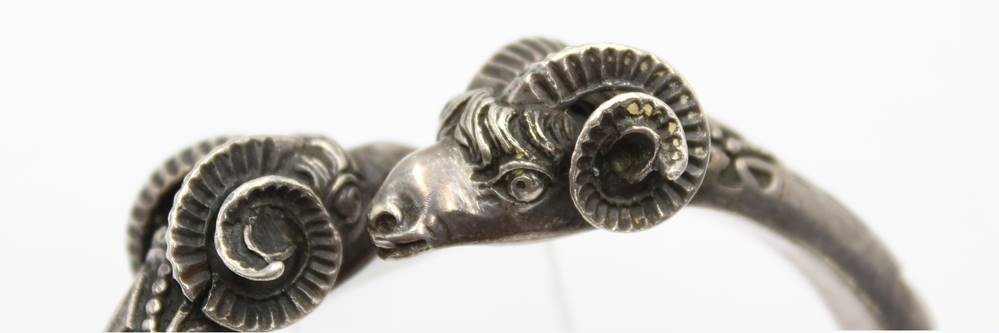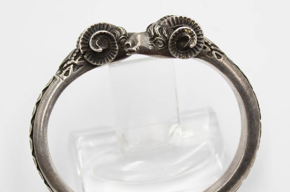 Losnummer 1000 - 925er Silber-Armspange, Widderköpfe, 44,8gr., ca. D-6cm