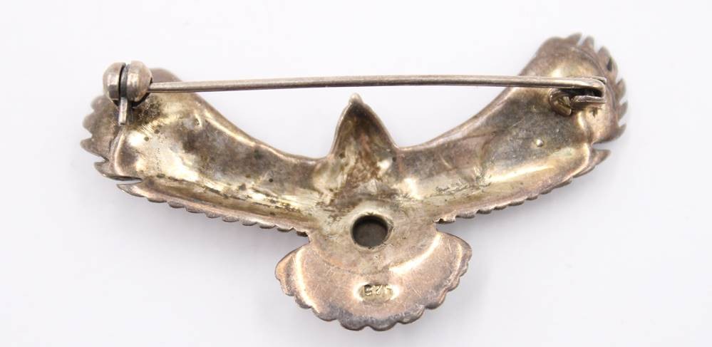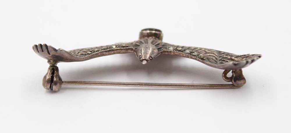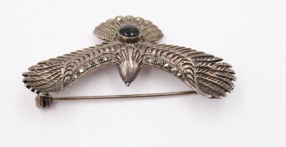 925er Silber-Brosche, Adler, Onyx und Markasiten, B-5,2cm, 7,3gr. [1]
