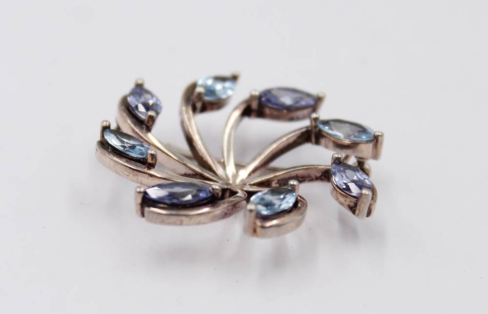 925er Silber-Brosche, blauer Steinbesatz, 8,4gr., ca. D-3,5cm [1]