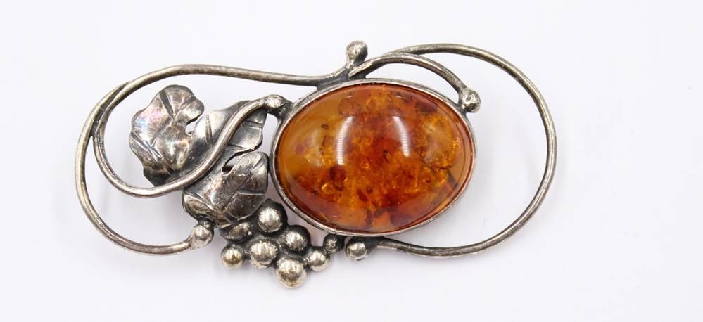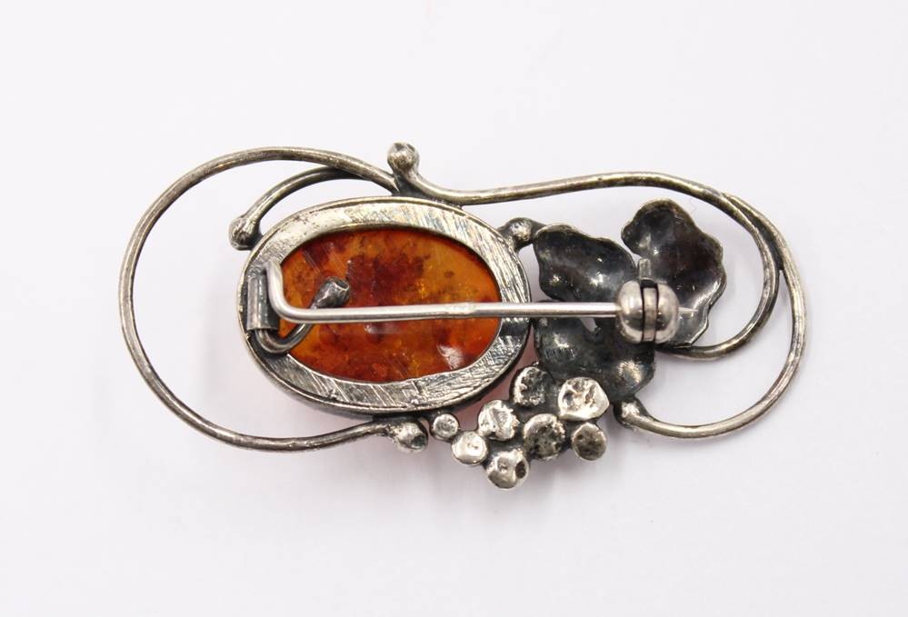 925er Silber-Brosche mit Bernstein, 3,9gr., L-4cm [1]