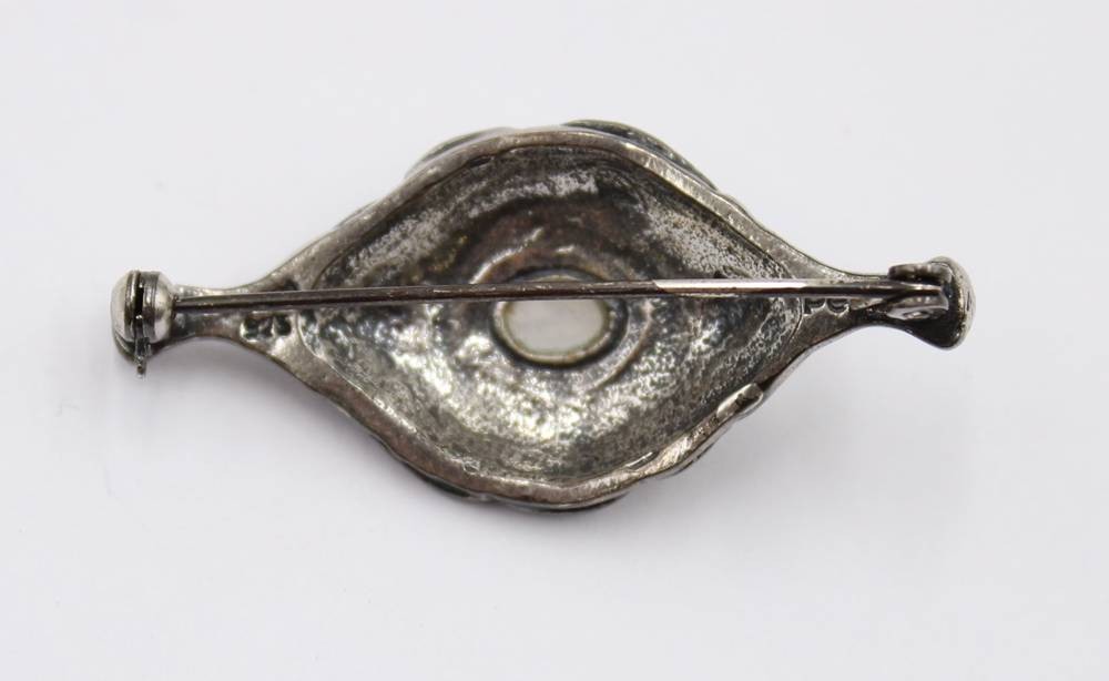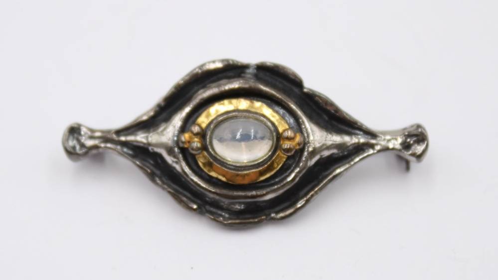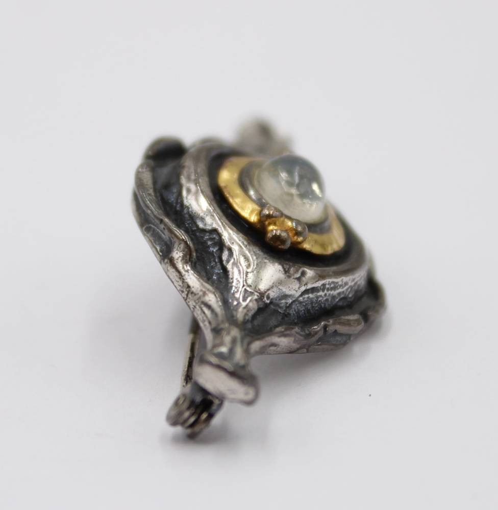 925er Silber-Brosche mit Feingoldauflage, Mondstein, 7,8gr., L-4,3cm [1]