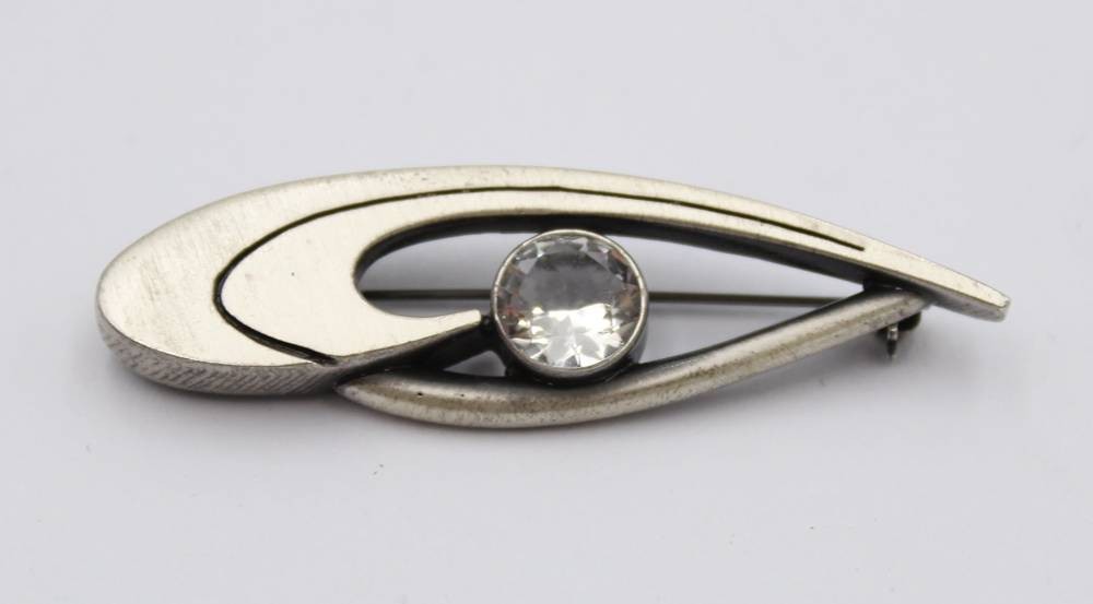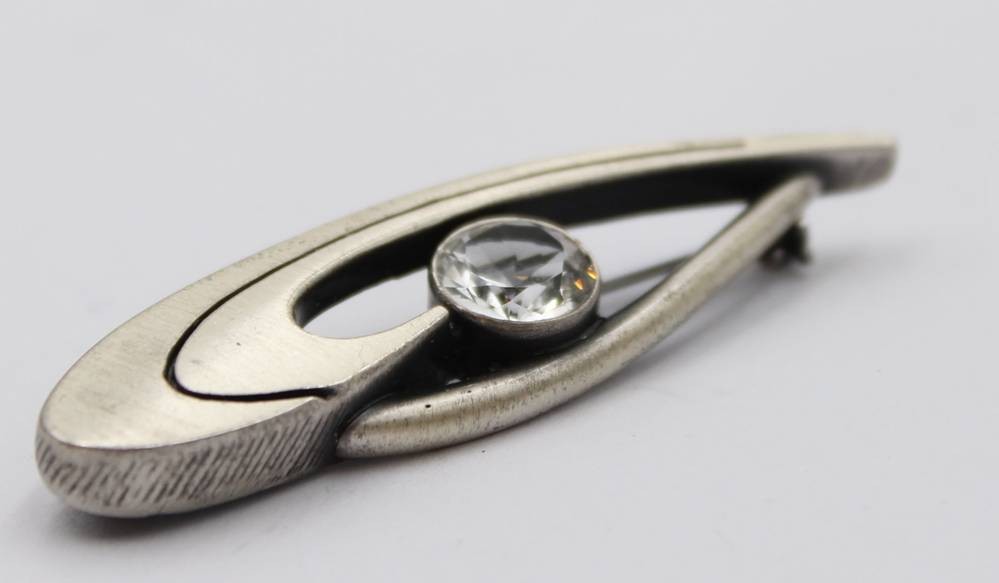 925er Silber-Brosche mit klarem Stein, 7,5gr., L-5,2cm [1]