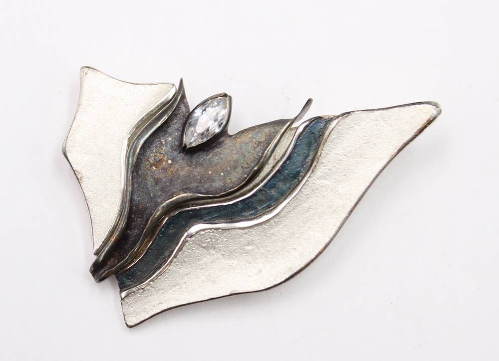 925er Silber-Brosche mit klarem Stein, 9gr., 3 x4cm [1]