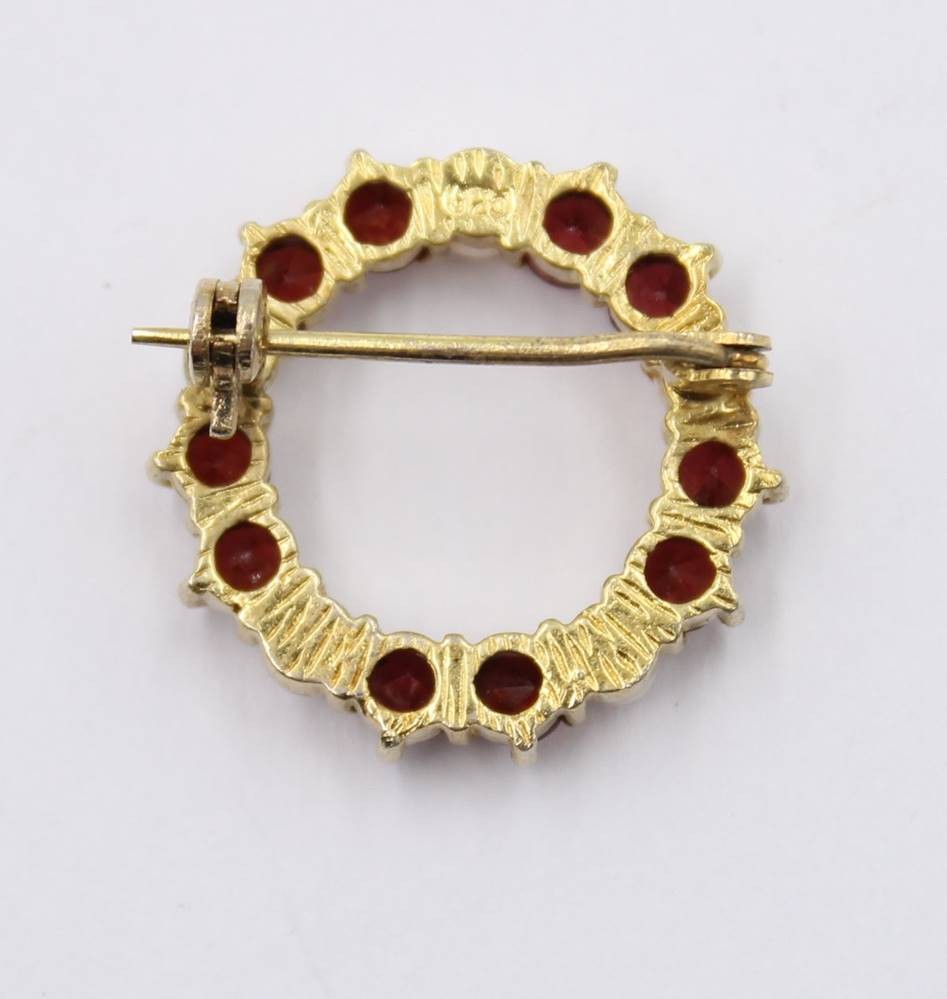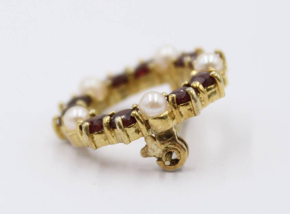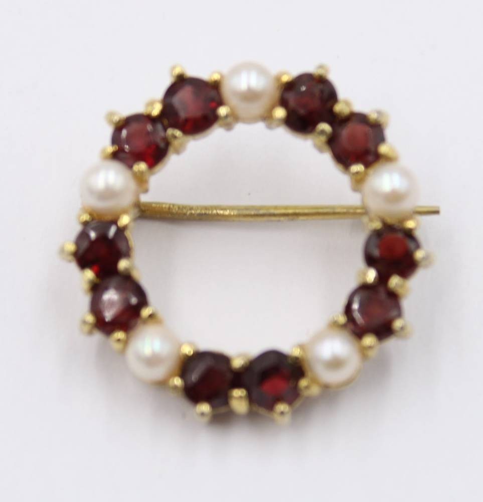 925er Silber-Brosche, vergoldet, Granat und Perlchen, 3,4gr., D-2cm [1]