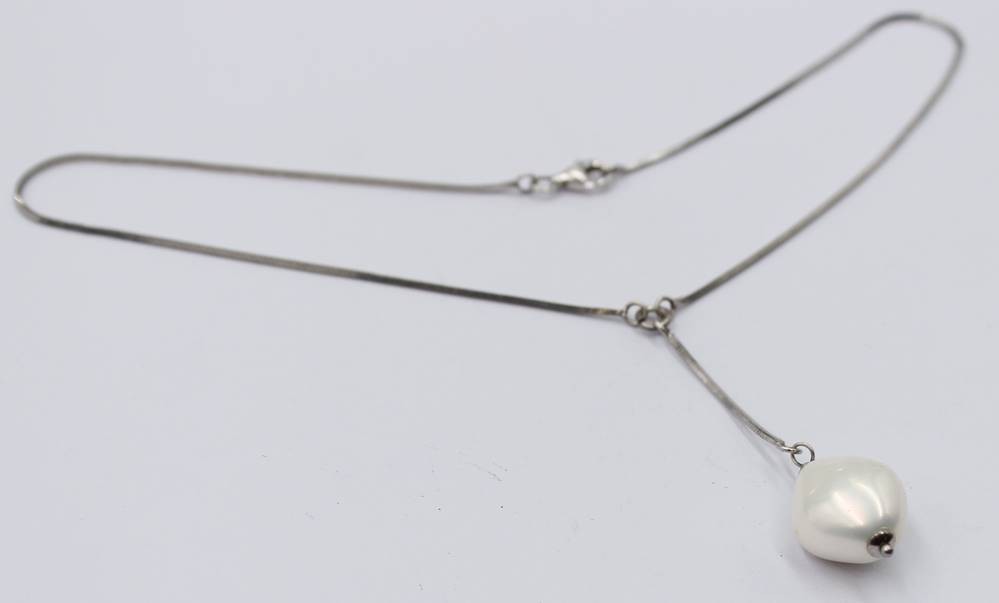 925er Silber-Collierkette mit Perle, ca. L-40cm, zus. ca. 10,9gr. [1]