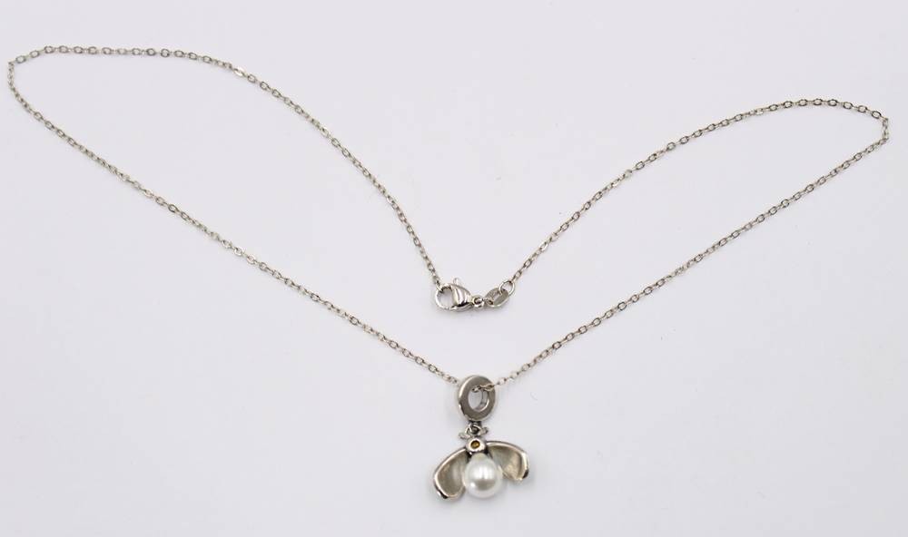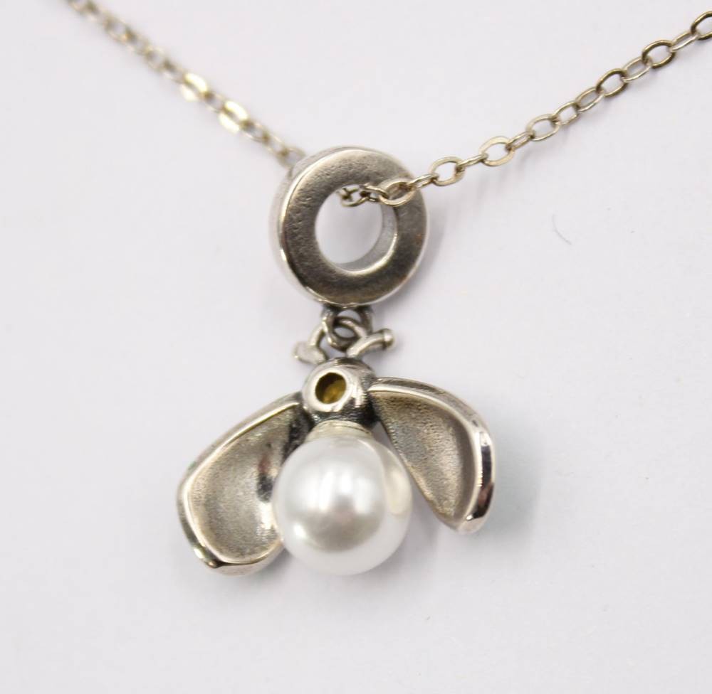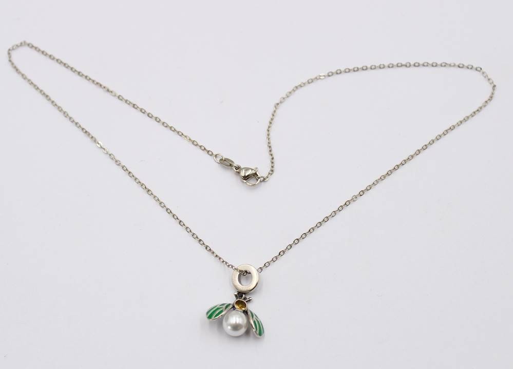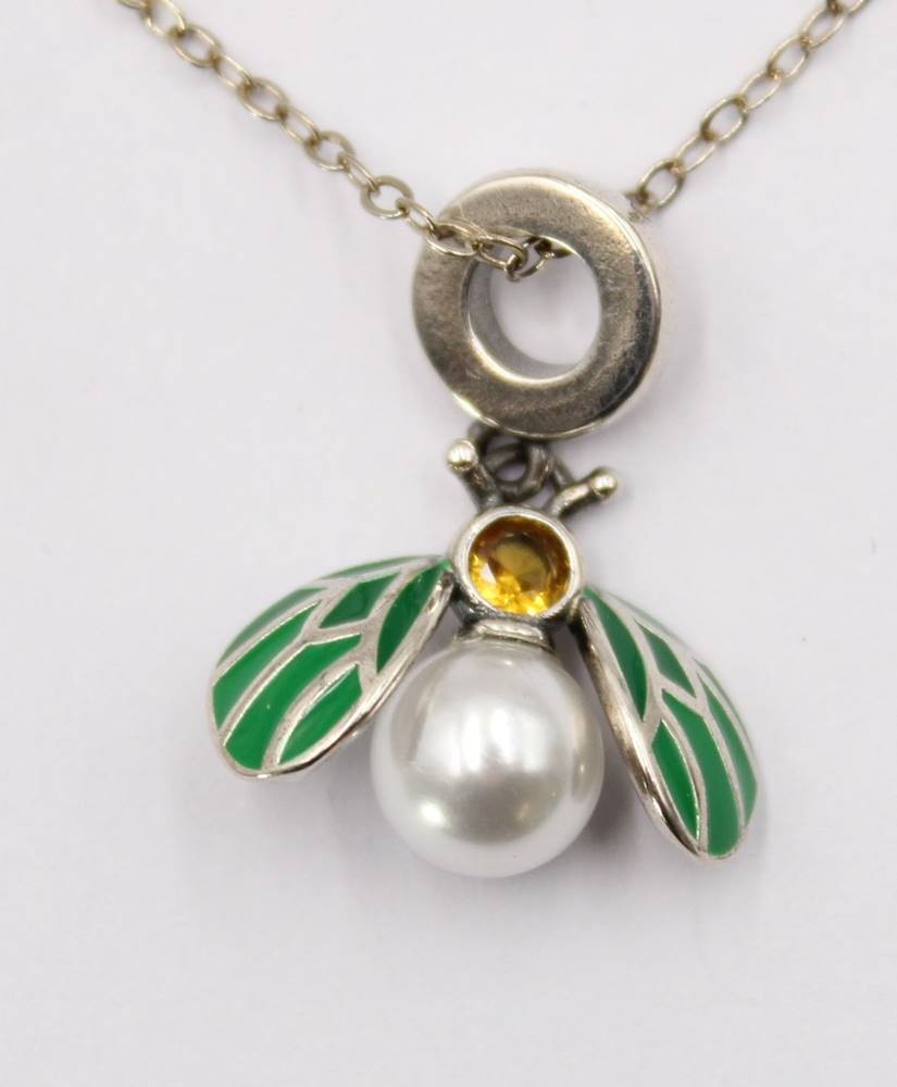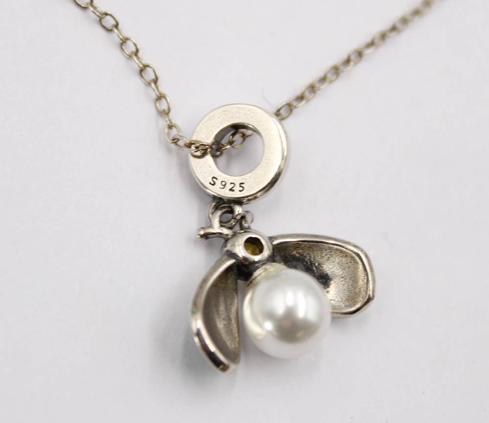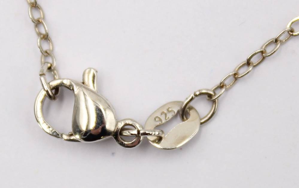 925er Silber-Halskette, emaillierter Perlanhänger, zus. 4gr., ca. L-44cm Anh. L-2,5cm [1]