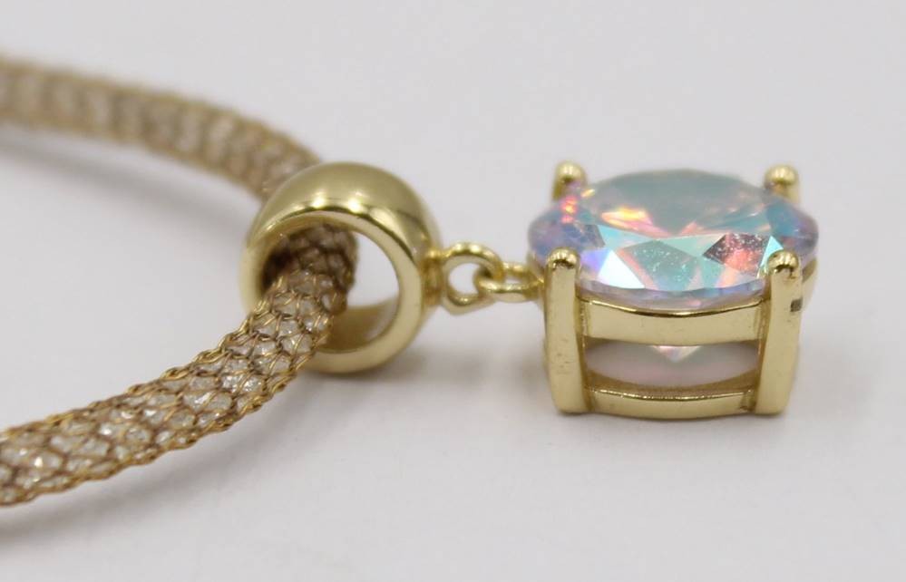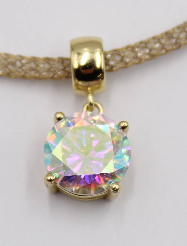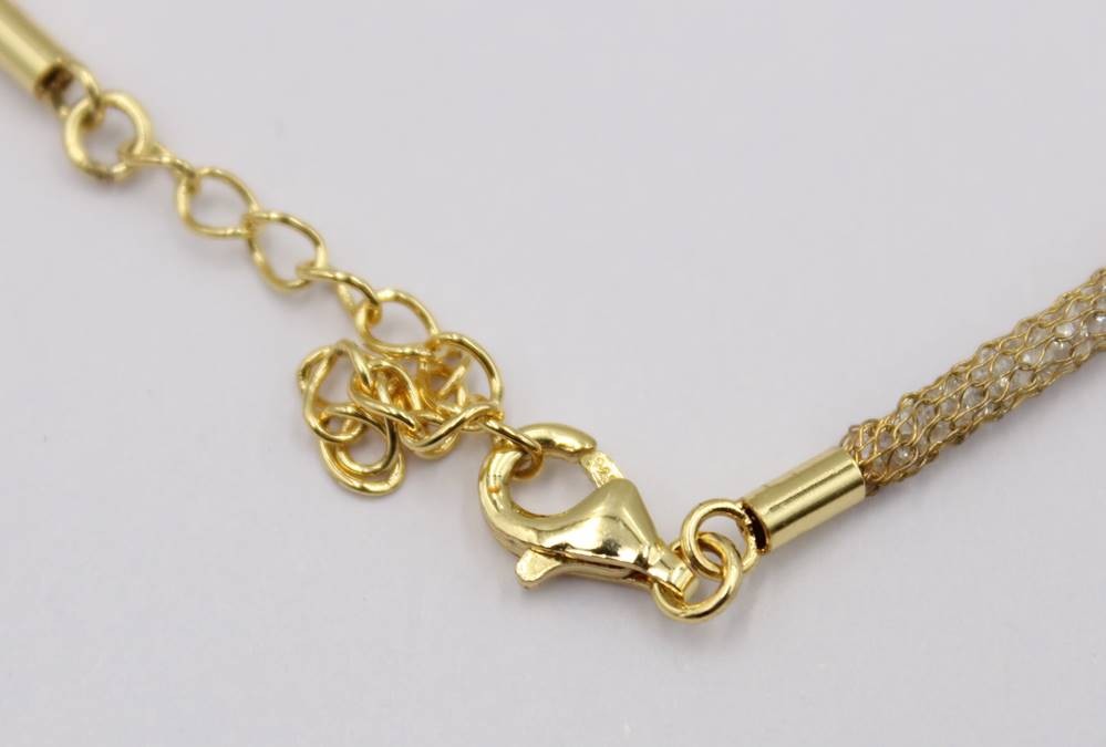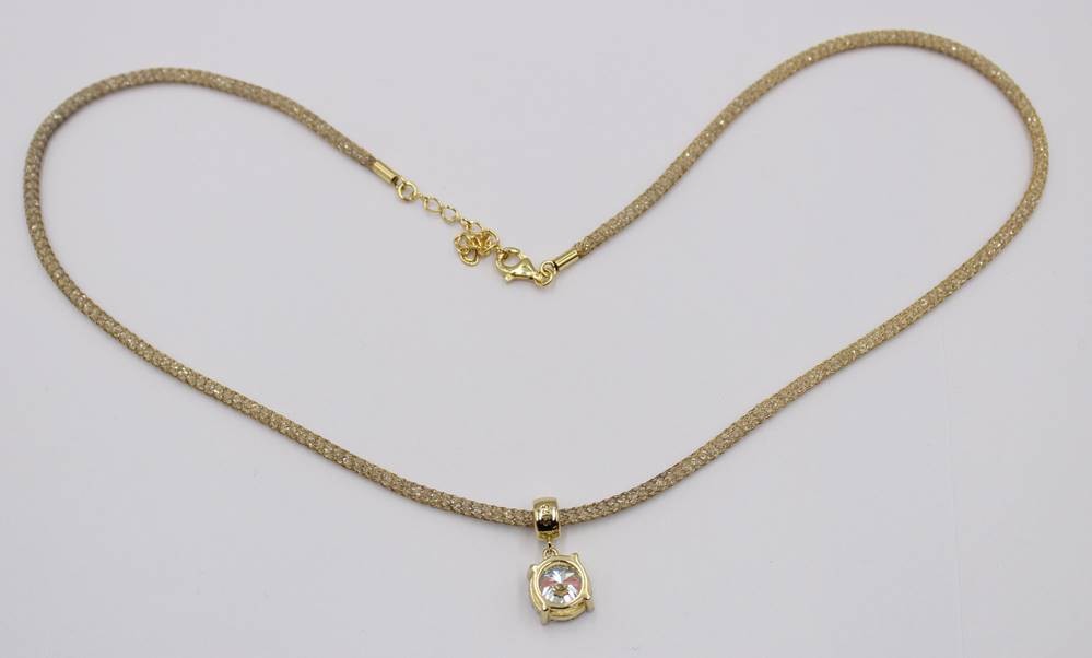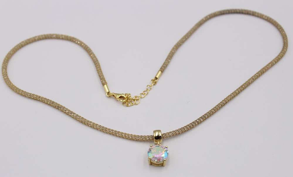 925er Silber-Halskette mit kl. Anhänger, Rheinkiesel, vergoldet, 6,9gr., L-44cm Anh., L-2cm [1]