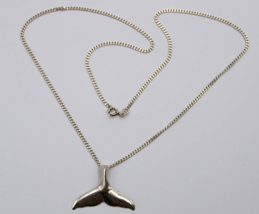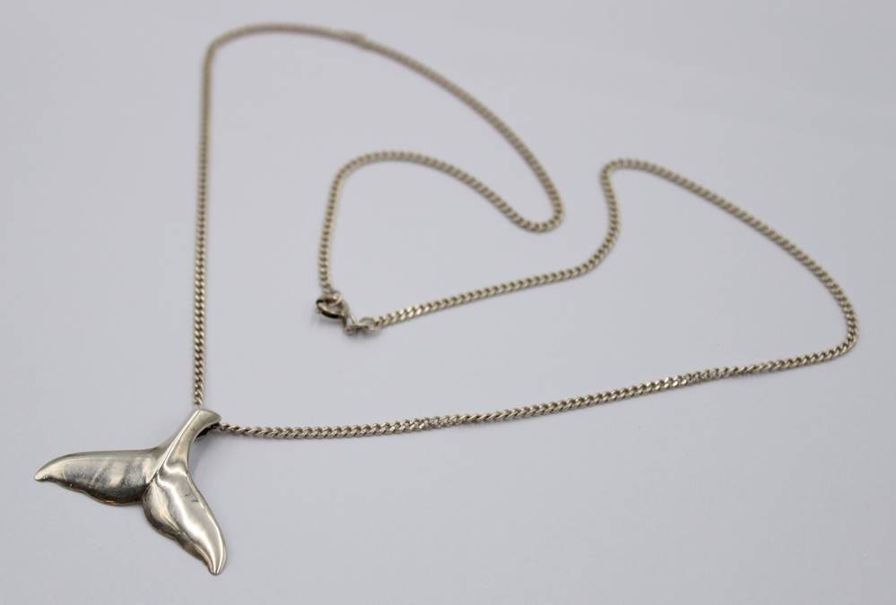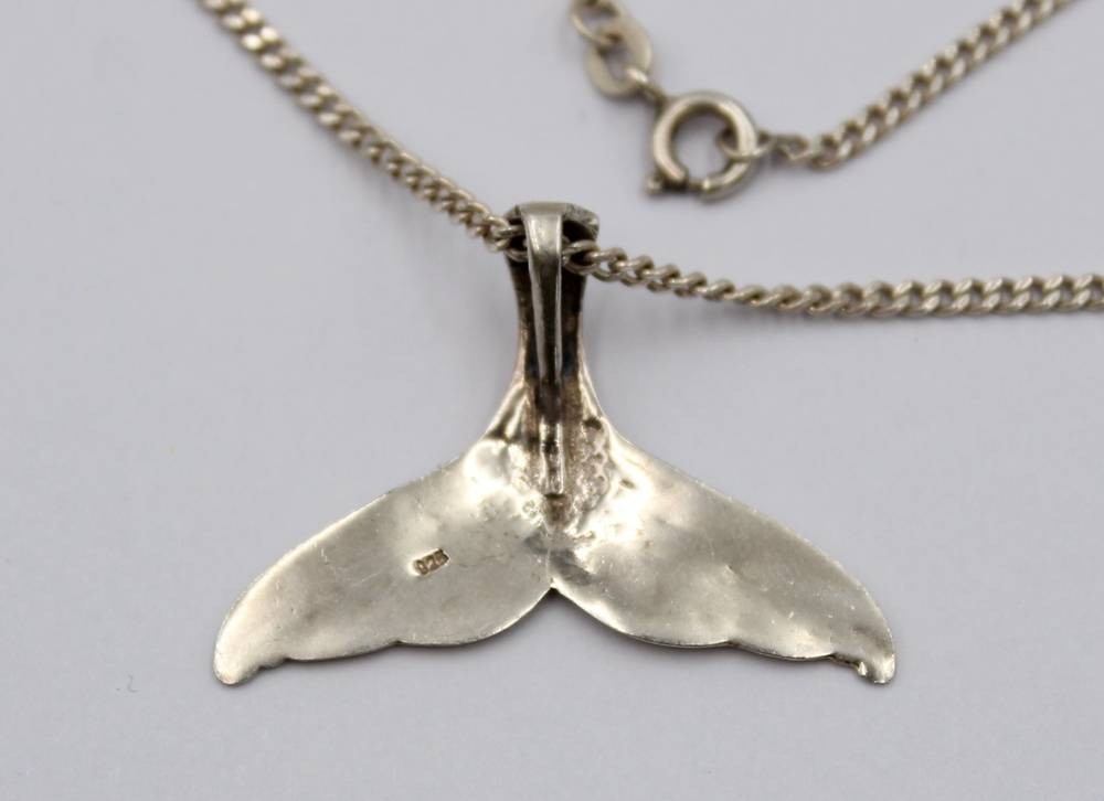 925er Silber Kette mit 925er Anhänger, Walflosse, zus. 8,6gr., L-52cm Anh. L-2,5cm [1]