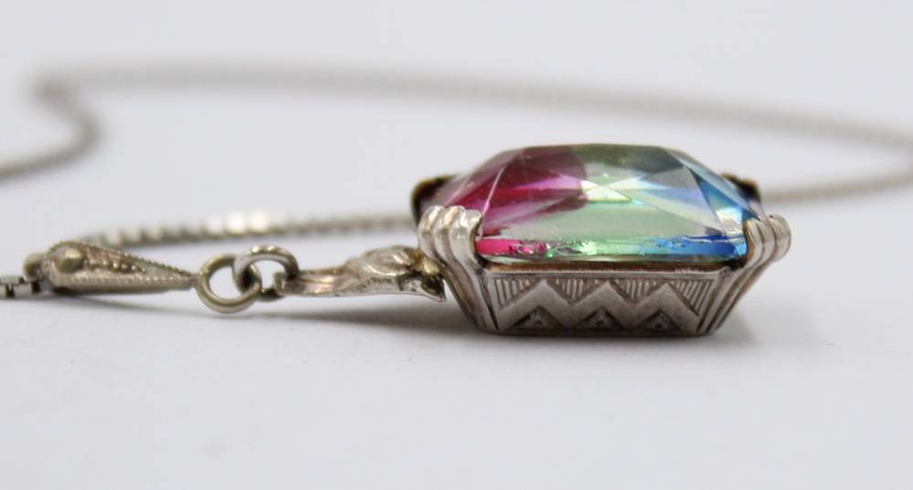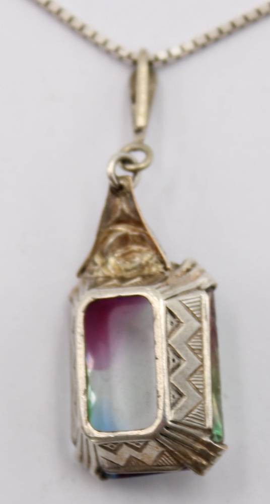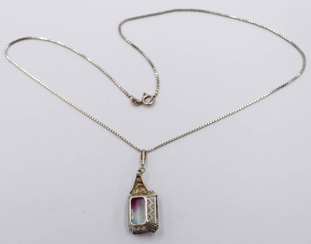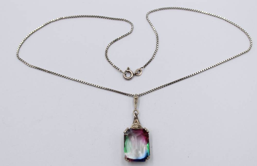 925er Silber-Kette mit Rheinkieselanhänger, ca. L-41cm Anh. L-4cm, ca. 7,2gr. [1]