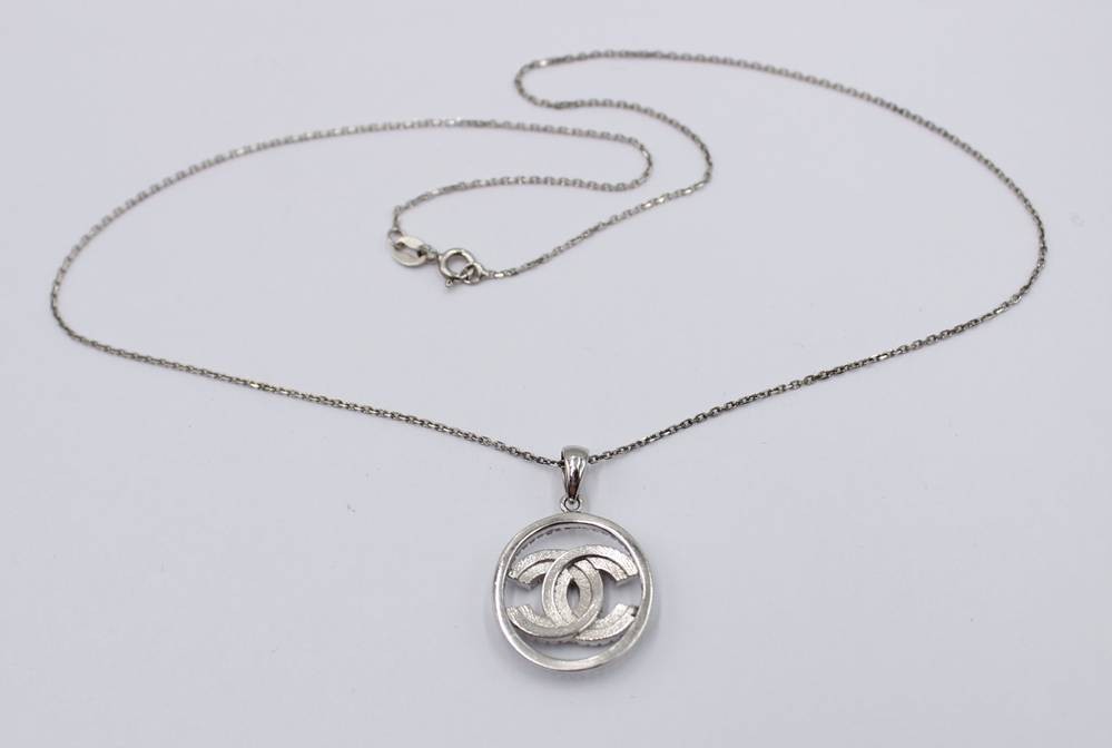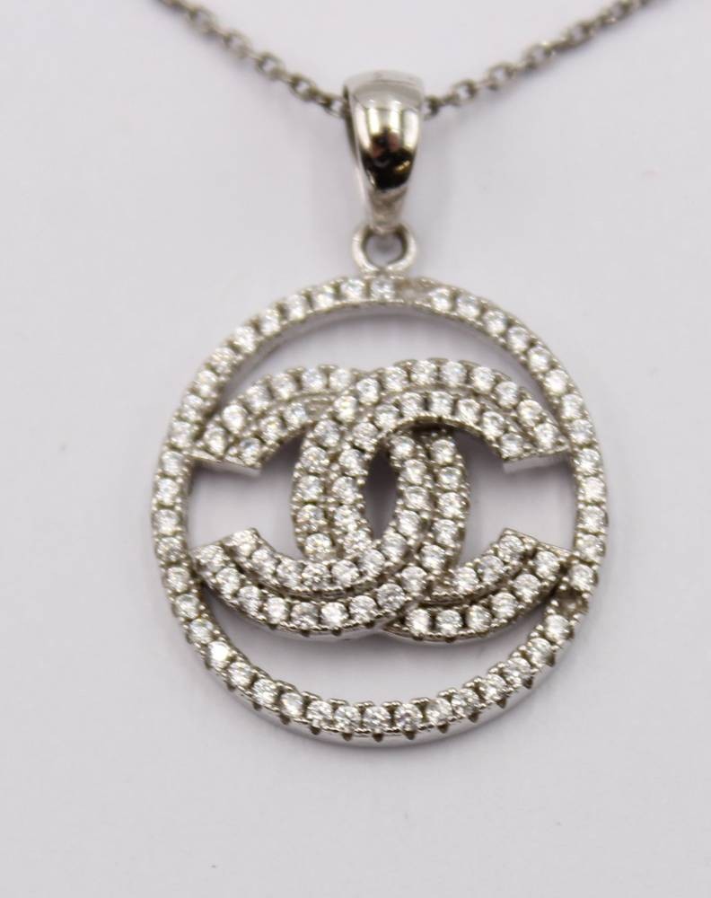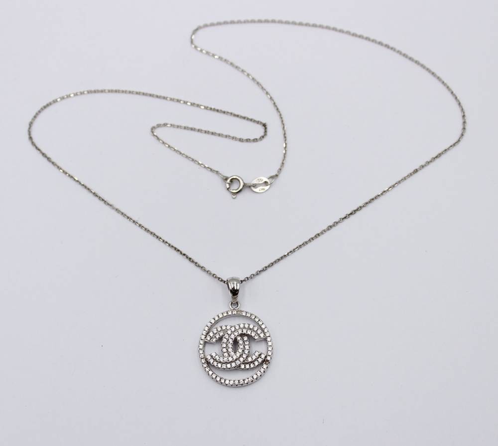 925er Silber-Kette mit Silber-Anhänger, Strasssteinbesatz (1x fehlt), 4,8gr., L-43cm Anh. D-2cm [1]