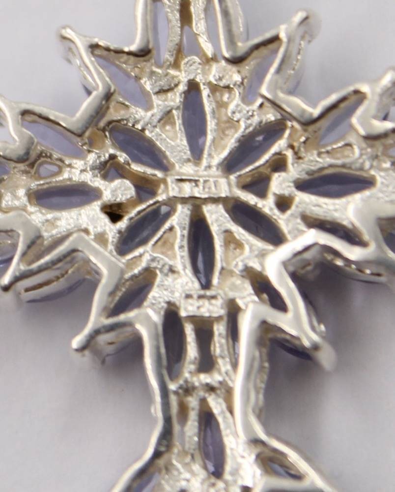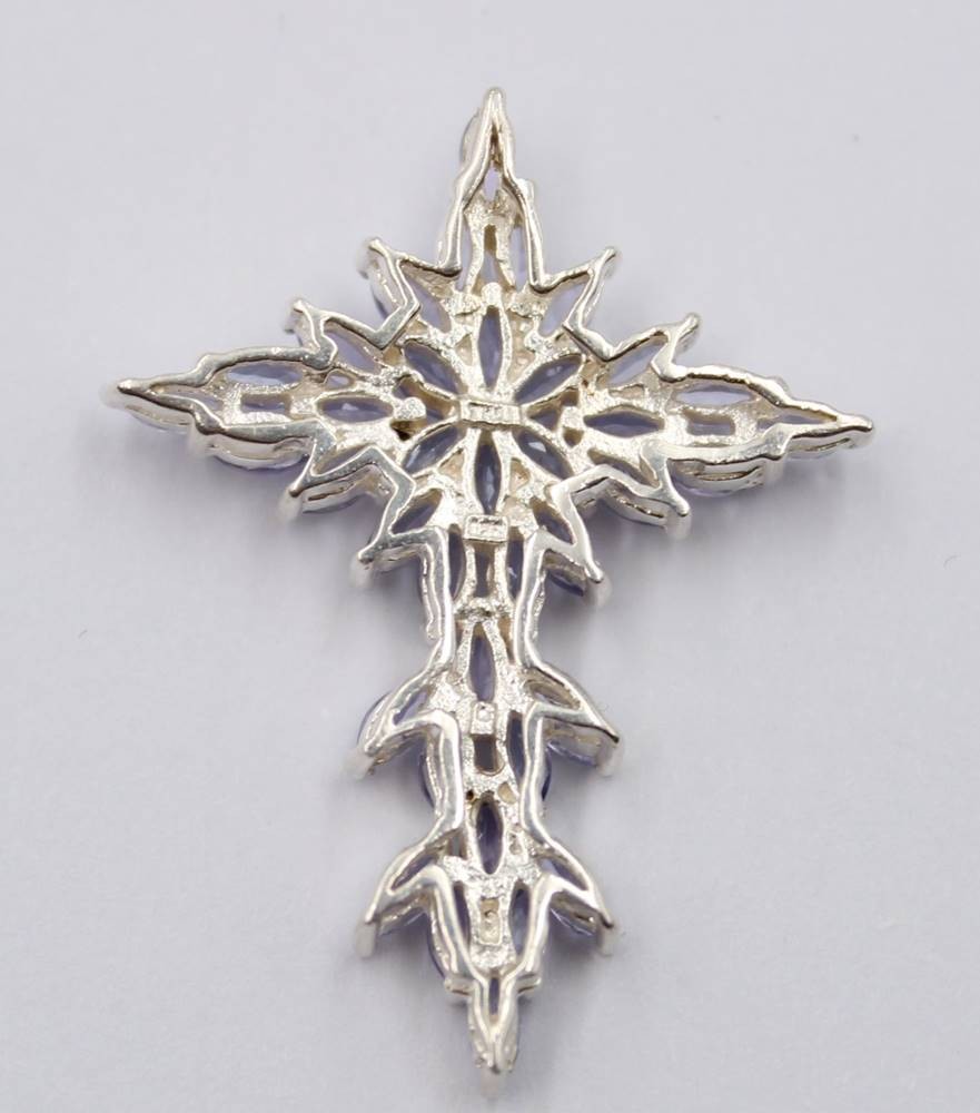 925er Silber Kreuzanhänger mit Tansanite, Thai, L- 4 cm. 5,8 gr. [1]