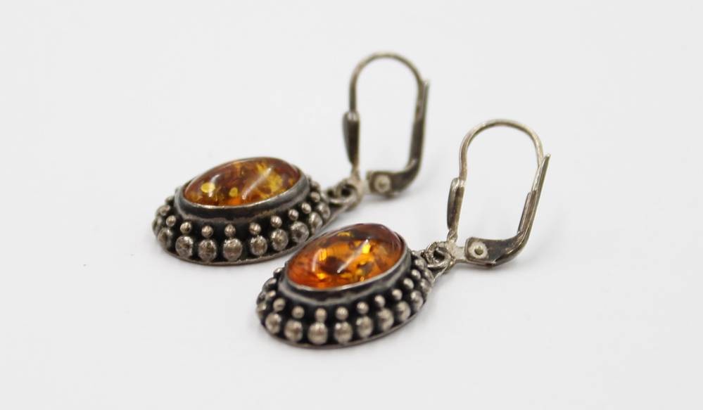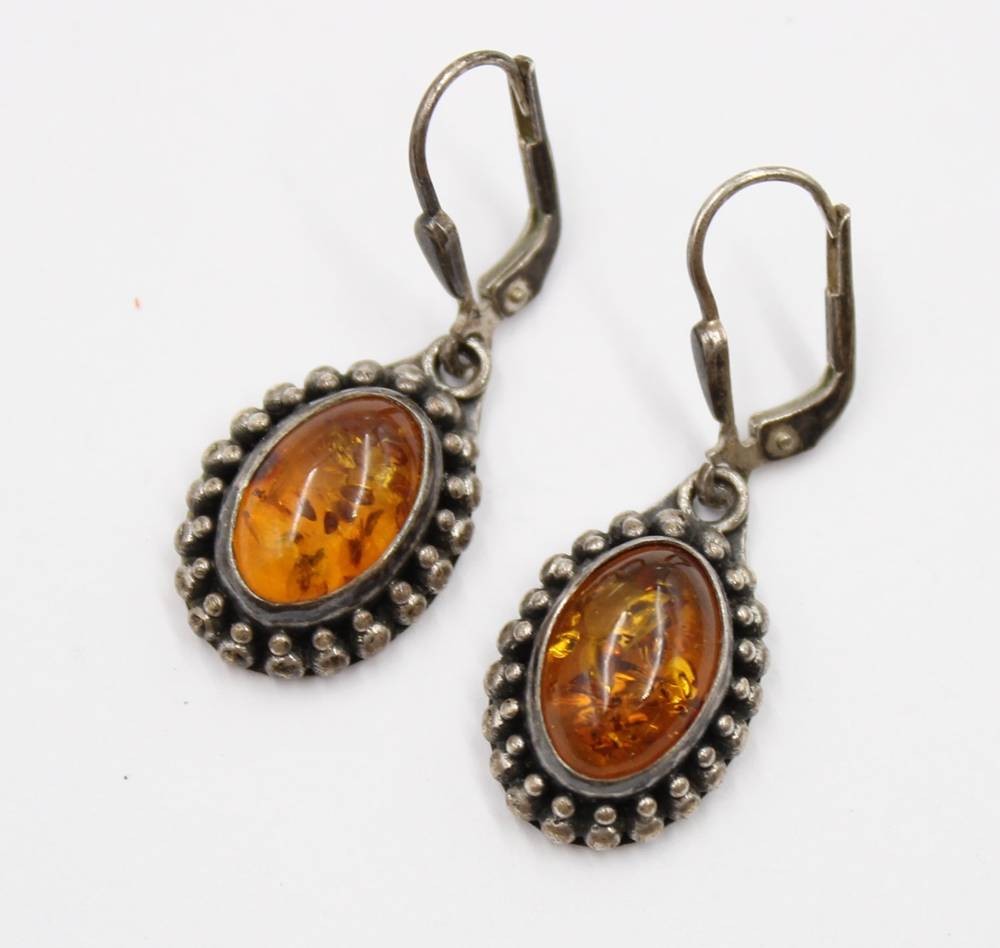 925er Silber-Ohrhänger mit Bernstein, älter, zus. 5,6gr., L-3cm [1]
