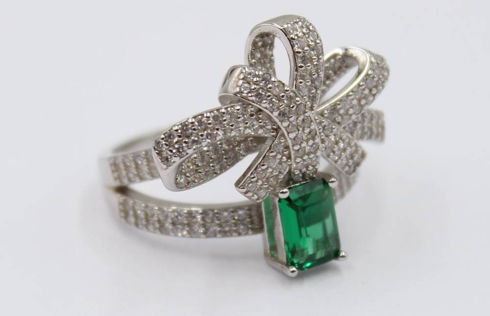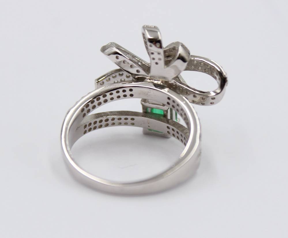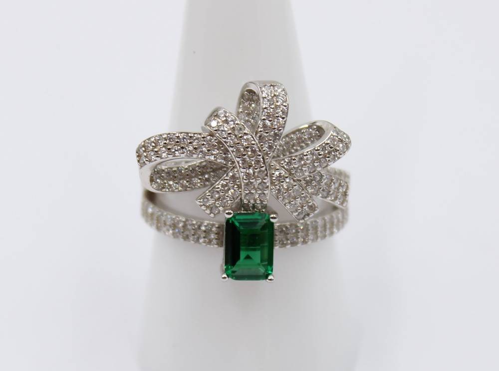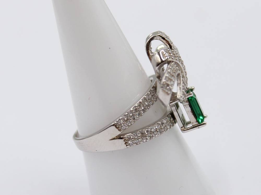 925er Silber-Ring, güner Stein sowie klare Steine, 7gr., RG 59 [1]