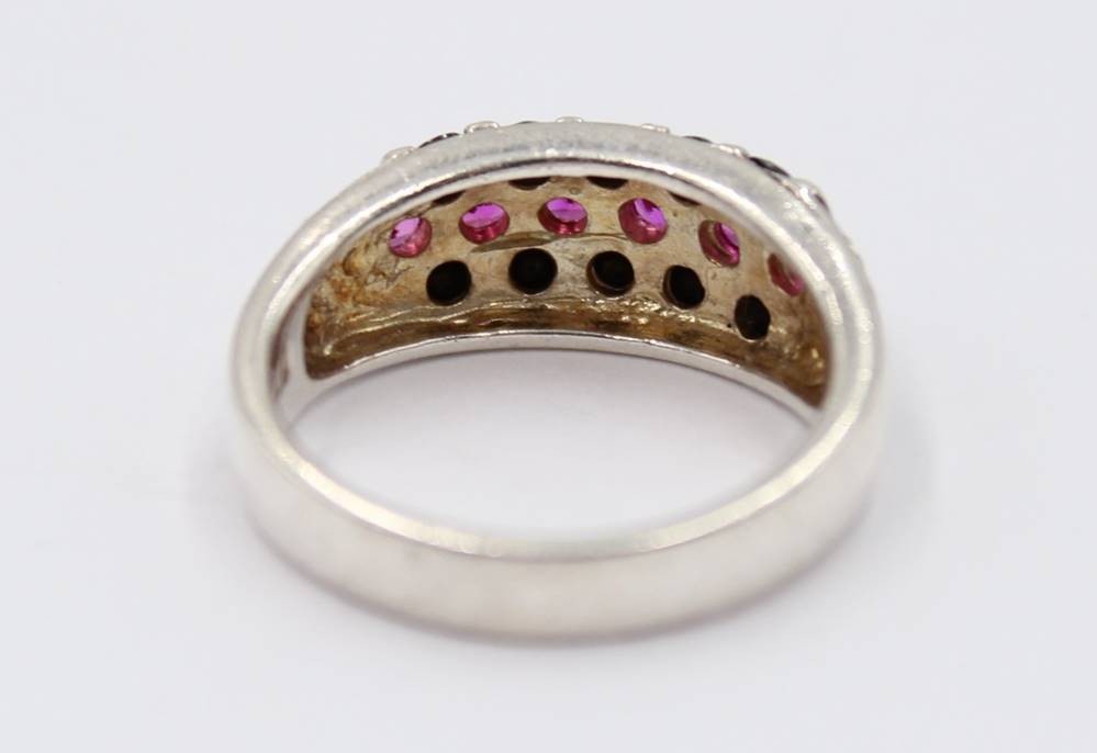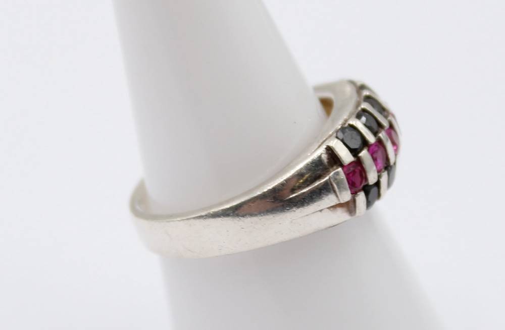 925er Silber-Ring, schwarze und rosa Steine, 5,6gr., RG 58